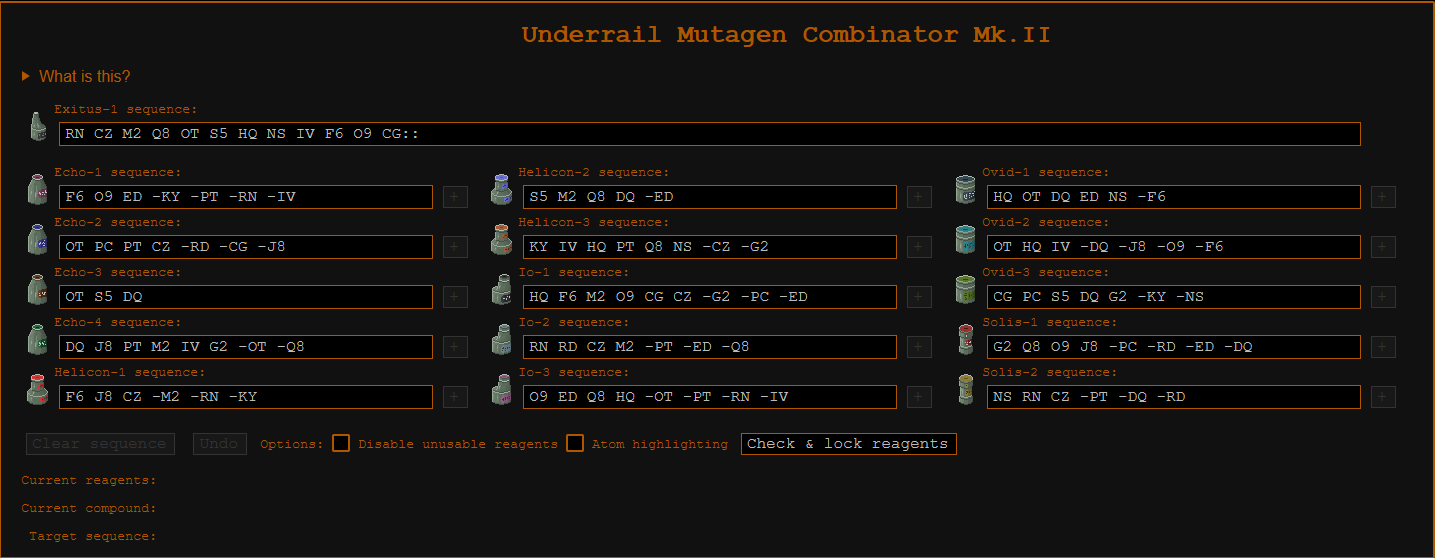 각 반응제의 스캔 결과는 매번 플레이마다 달라진다. 즉 퍼즐의 내용이 매번 바뀐다. ㅈ같은 생키