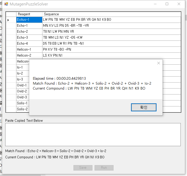 직접 입력했거나 혹은 cfg 파일을 수정 등으로 16개 Mutagen Reagent를 전부 입력했다면 하단의 Save, Run 버튼이 활성화 된다.