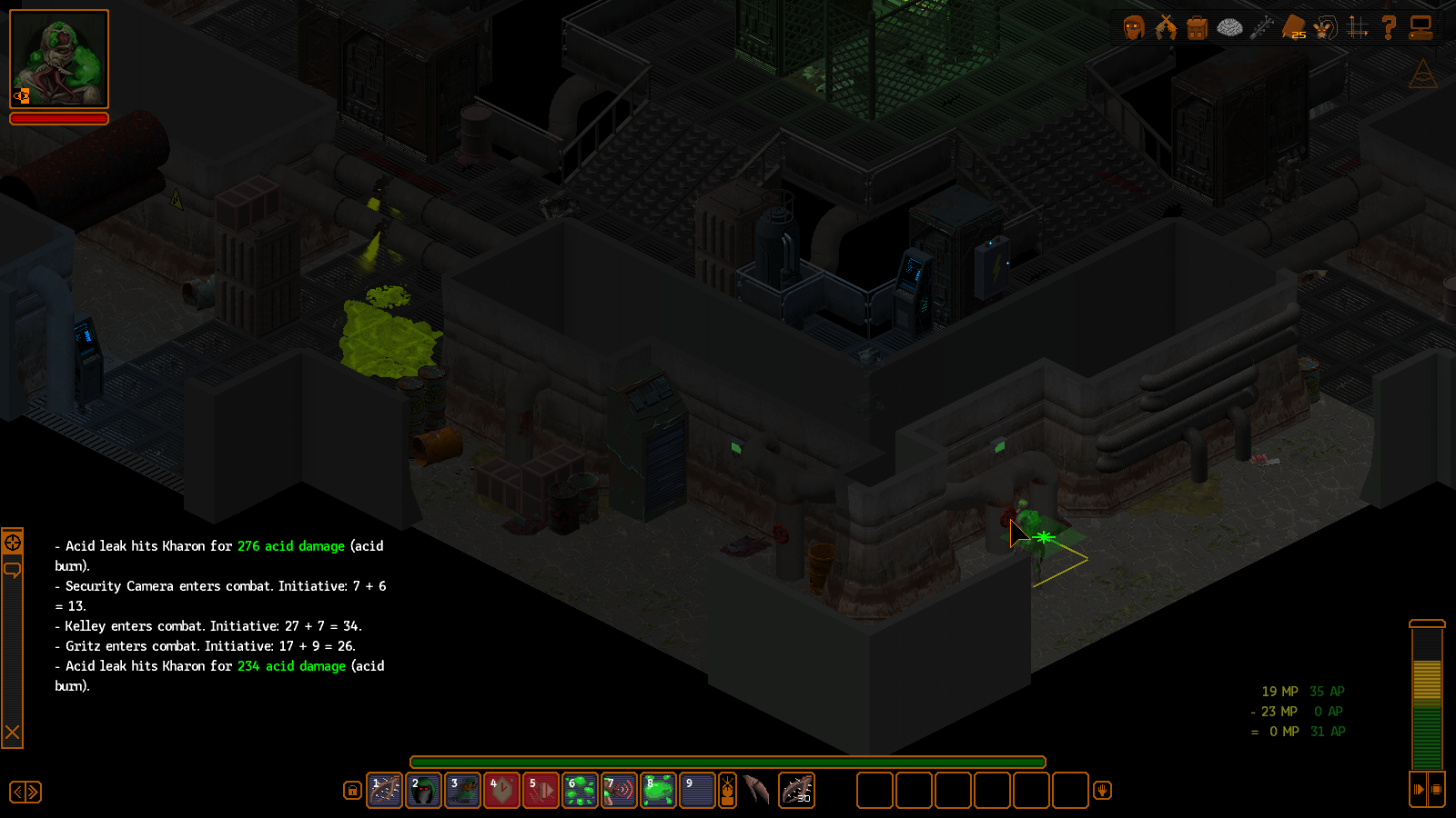 모니터를 잘 보고있다가 Kharon머리위에 산성액을 부어서 처치하자는 계획을 세운다.