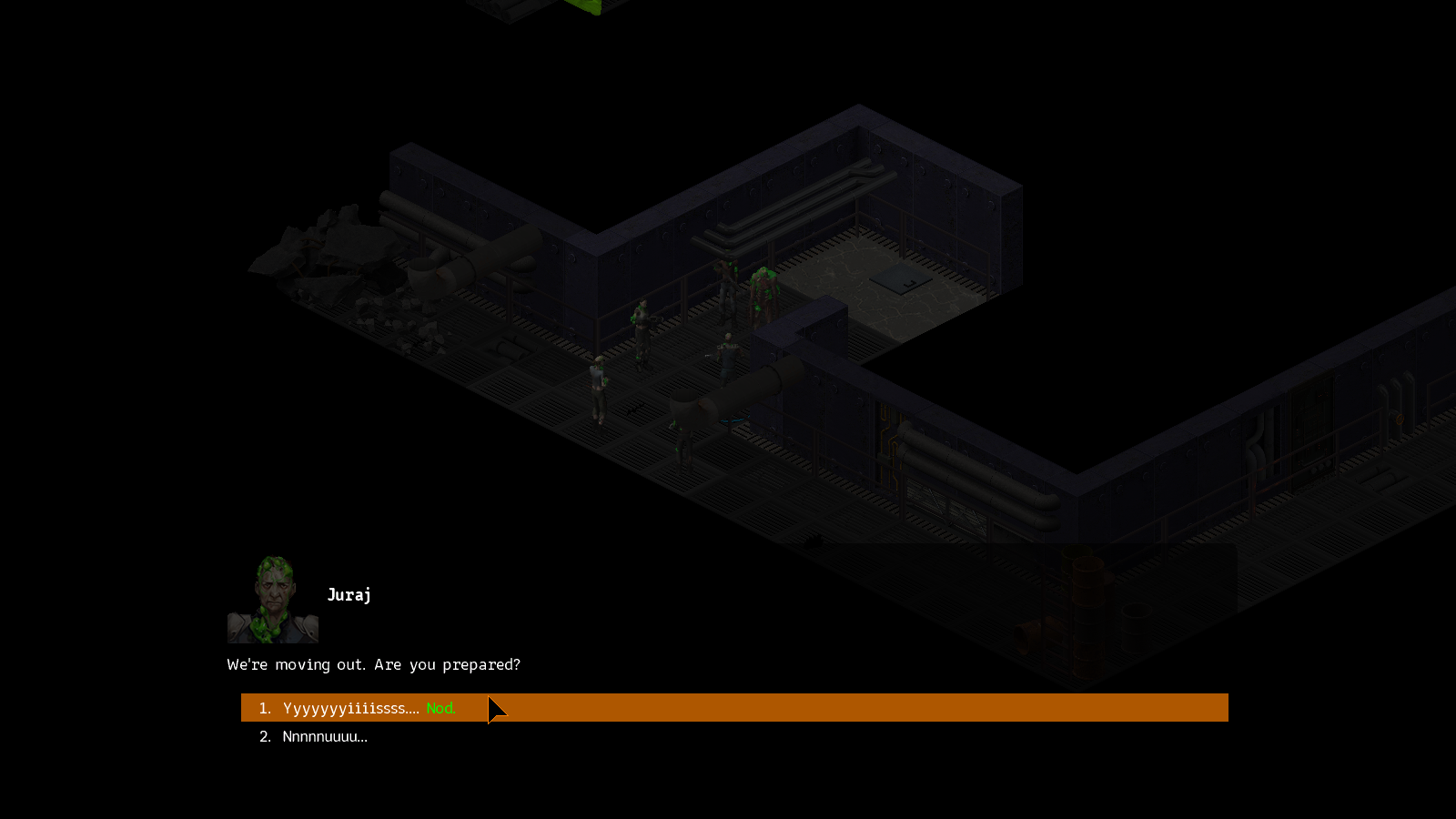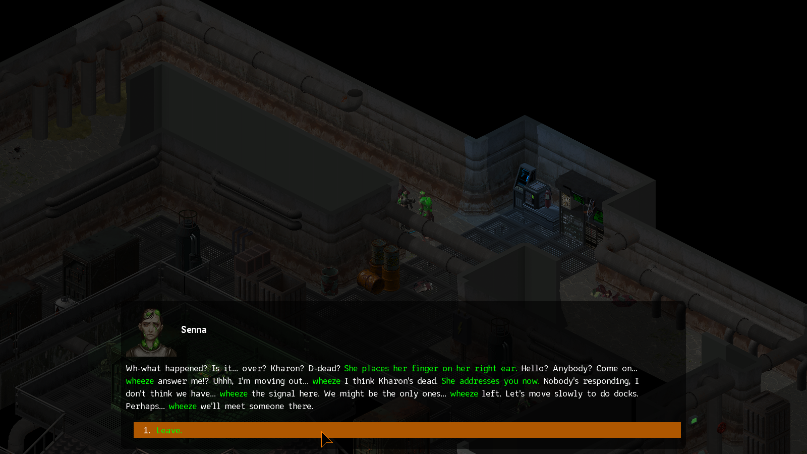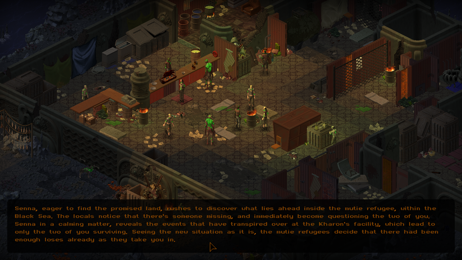 Juraj와 대화하느냐 마느냐에 따라 진행이 달라진다. 이대로 발전기를 켜는 방향으로 가면 Kharon을 따라가는 엔딩을 보게되고, Juraj와 협력하려면 Kharon을 처치해야 한다. Kharon은 상당한 강적이므로 후자의 난이도가 훨씬 어렵다.