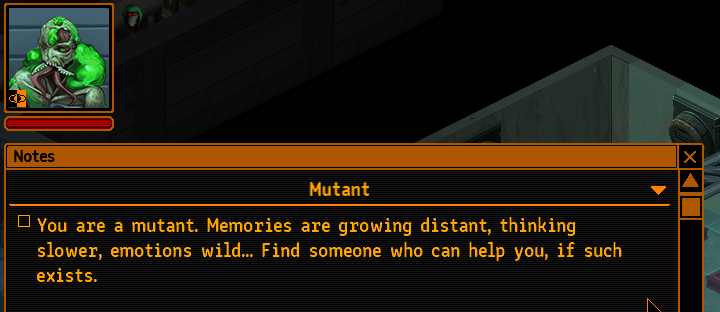 Protectorate 퀘스트를 진행하던 도중 혹은 Bunker를 탐험하던 도중에 뮤타젠에 노출되면 뮤턴트가 되어버리는데