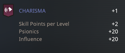 Wing, Trait 보너스를 합쳐서 Perception 8, Charisma 8, 나머지 5를 맞춰준다.