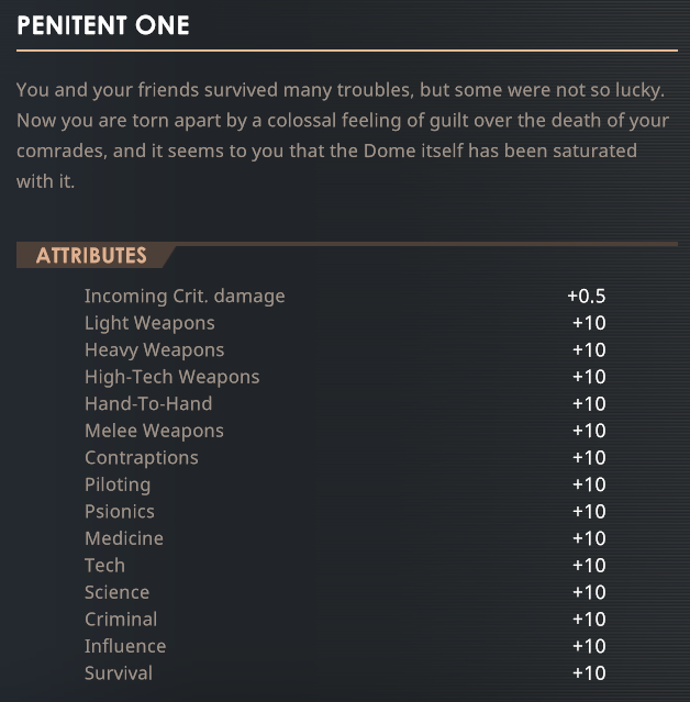 무기 보너스가 크게 붙는 Gun Fanatic, 모든 스킬 보너스를 올려주는 Penitent One, Attribute 보너스가 큰 Bossy가 주로 사용된다.