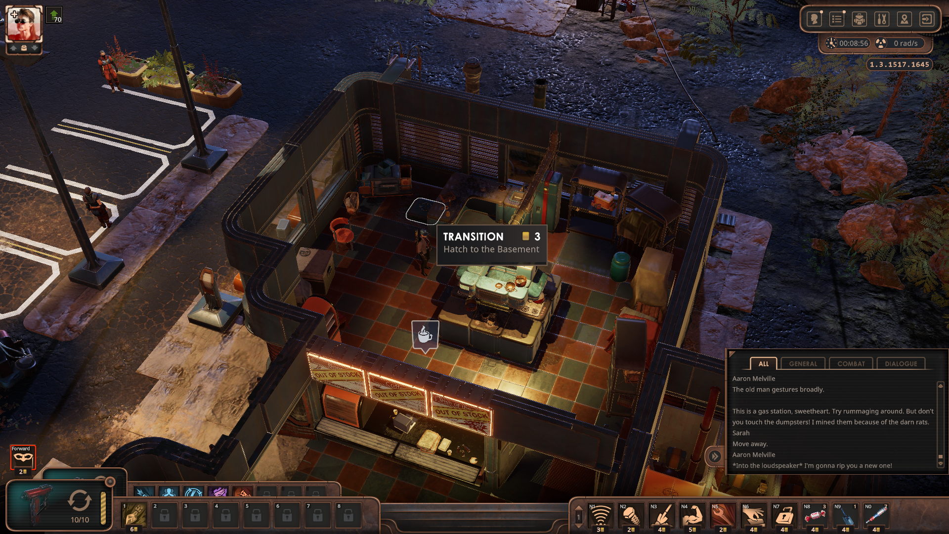 맵 중앙 식당의 할아범한테 차가 퍼졌다고 물어보면 주유소 열쇠를 준다.