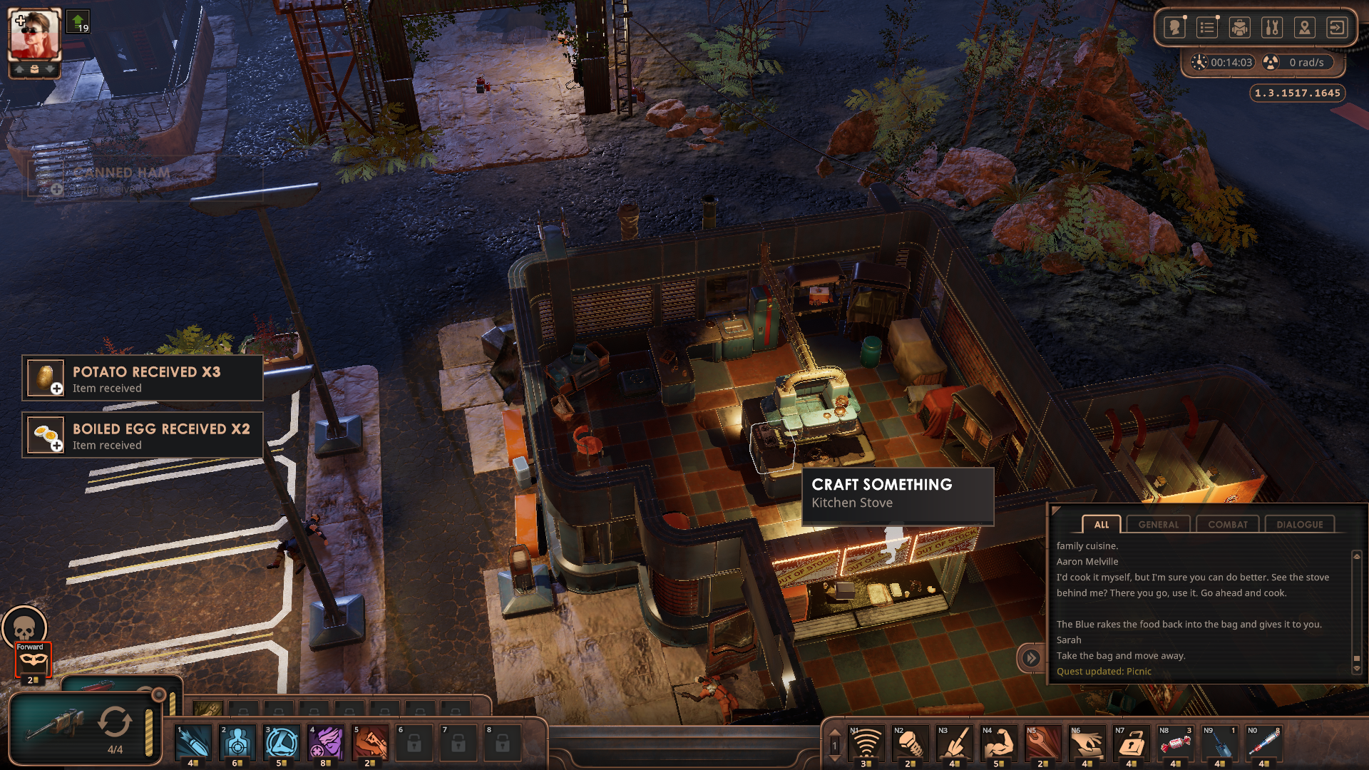 식당 옥상에는 잔해로 막힌 상자가 있는데 의약품이 약간 있는 정도이므로 필요 없다면 무시.