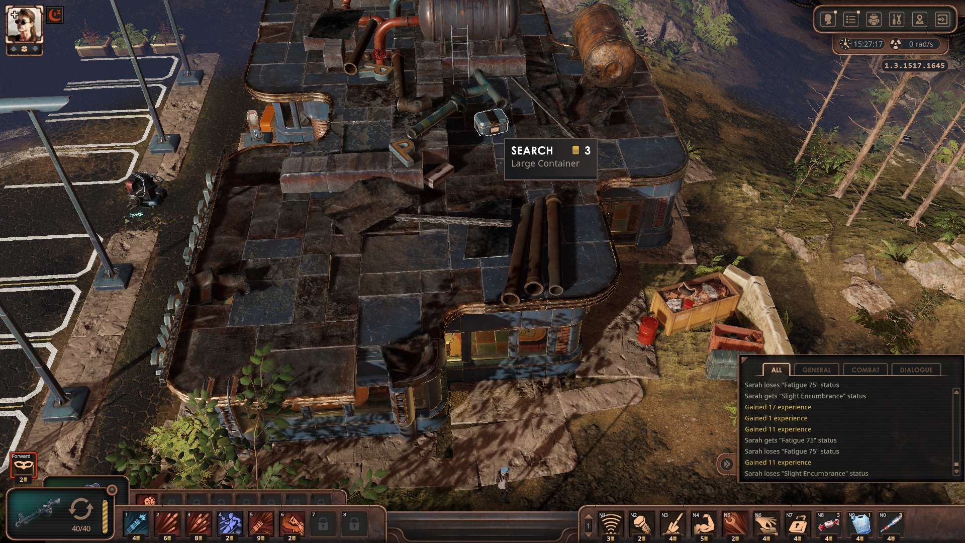 주유소 내부를 싹 털고 개인 상자를 사용해 인벤토리를 정리한다. Personal Box에 담긴 물건은 이후 캠핑이나 하우징으로 열면 항상 따라온다.