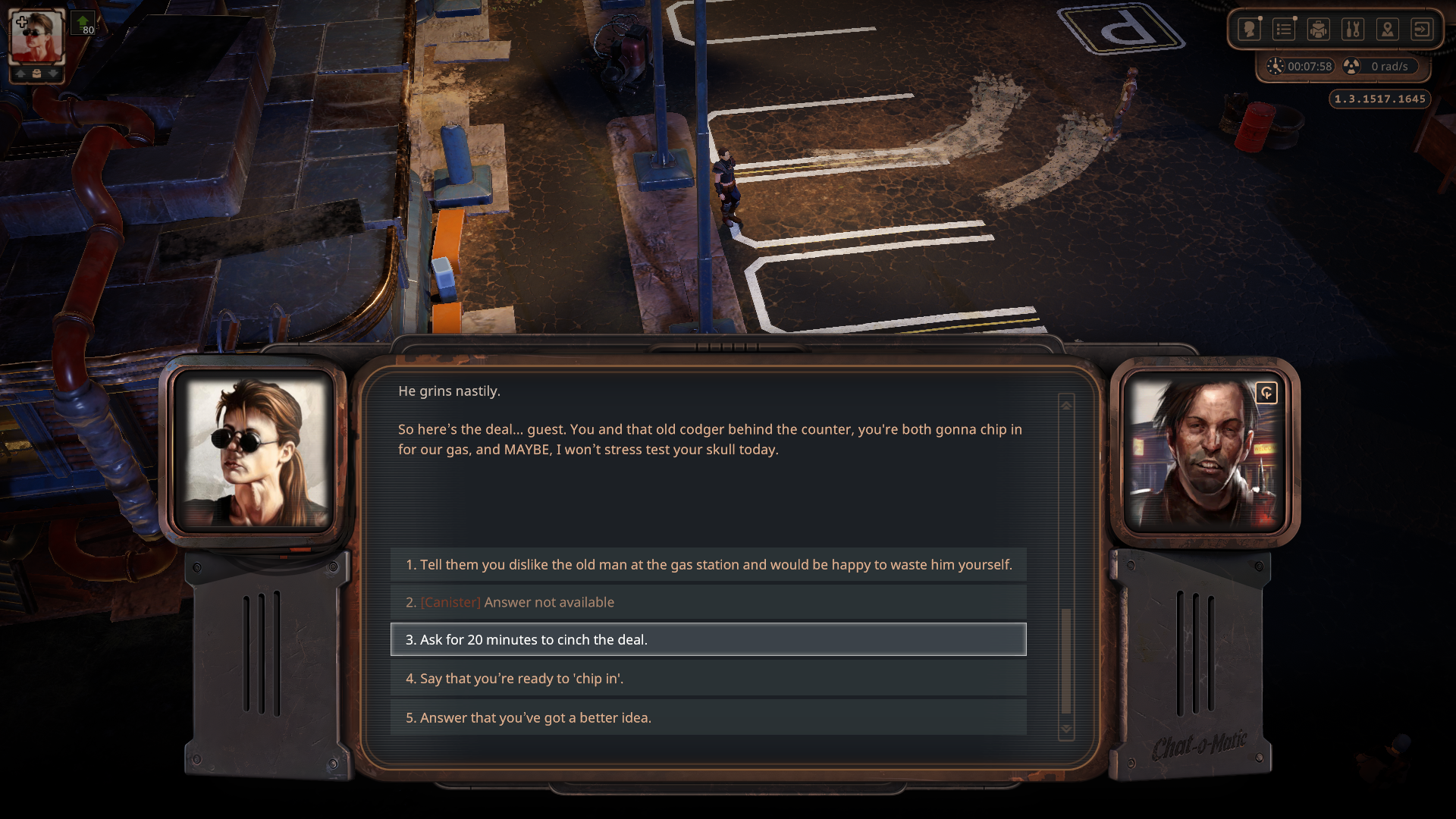 주유소 앞에 Travis라는 놈팽이가 있는데 이것저것 정보를 알려준다.