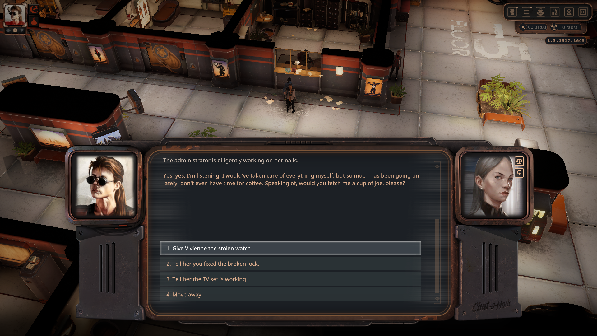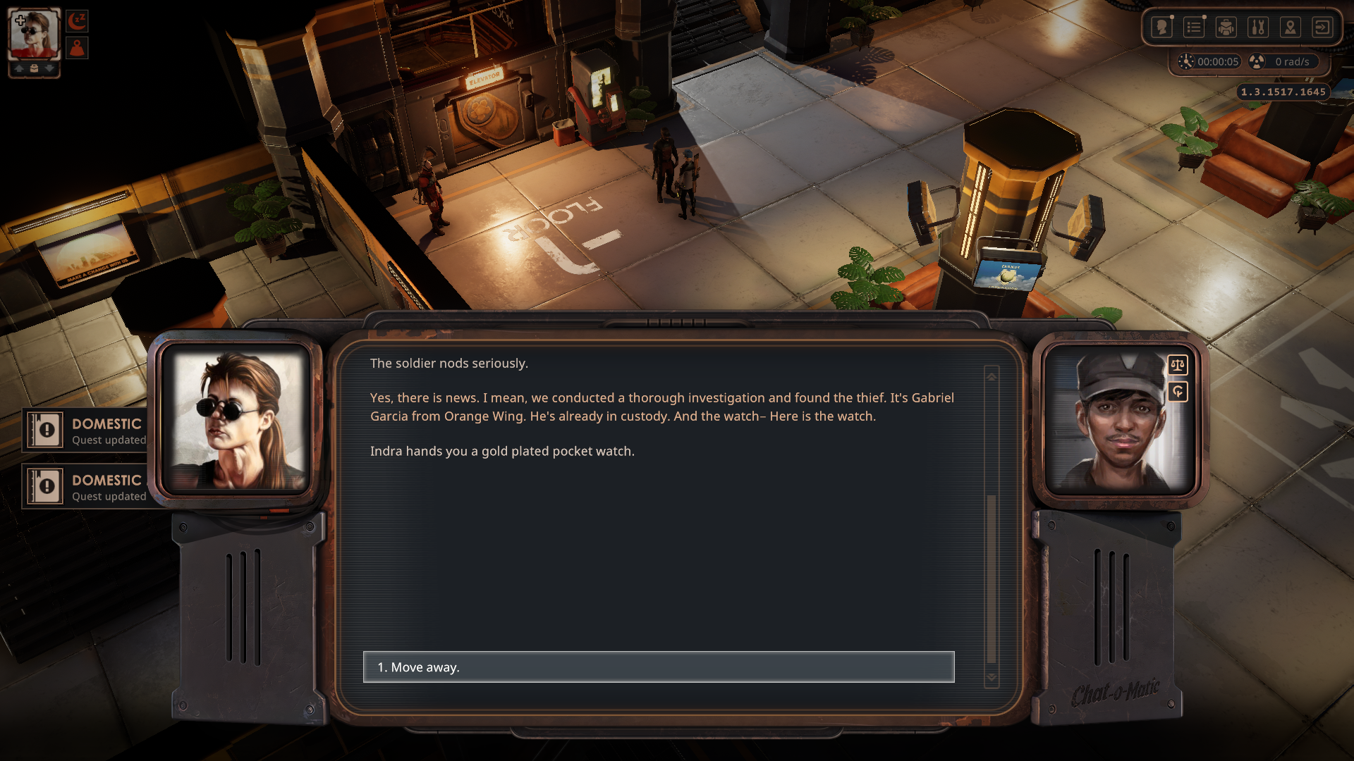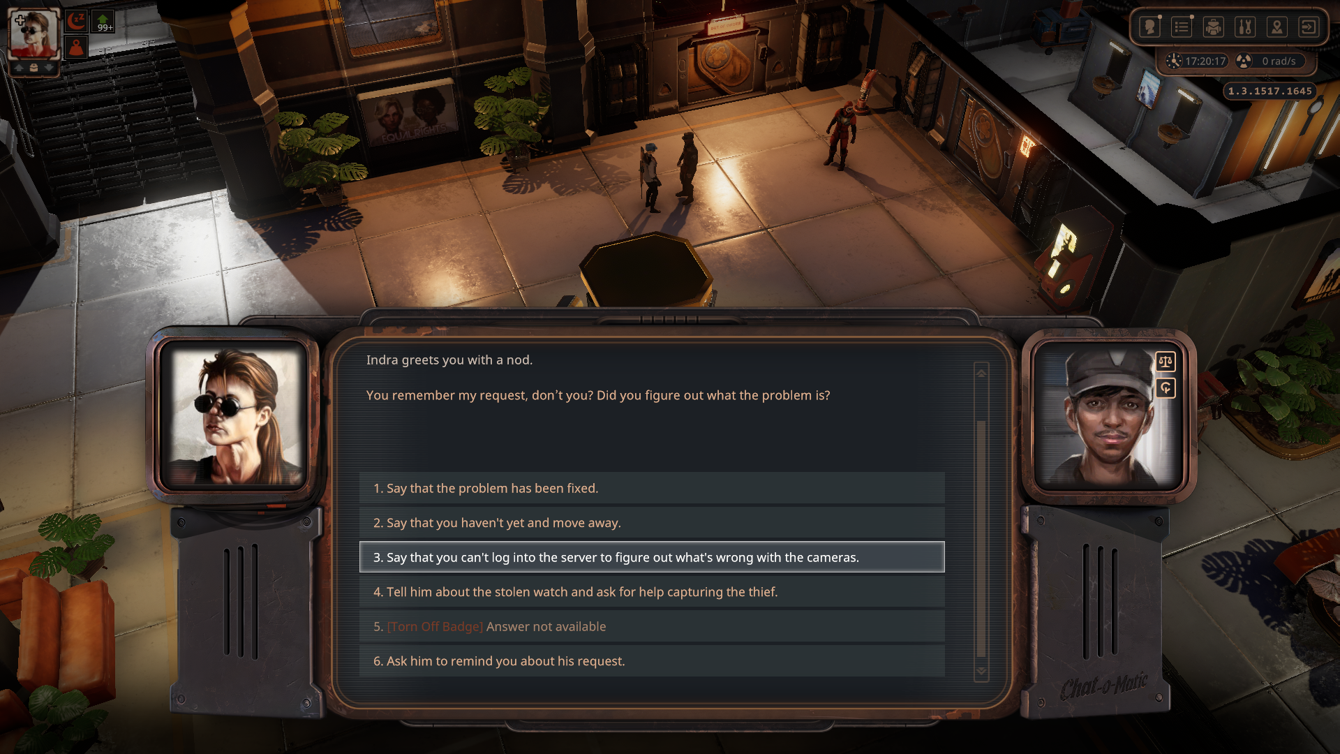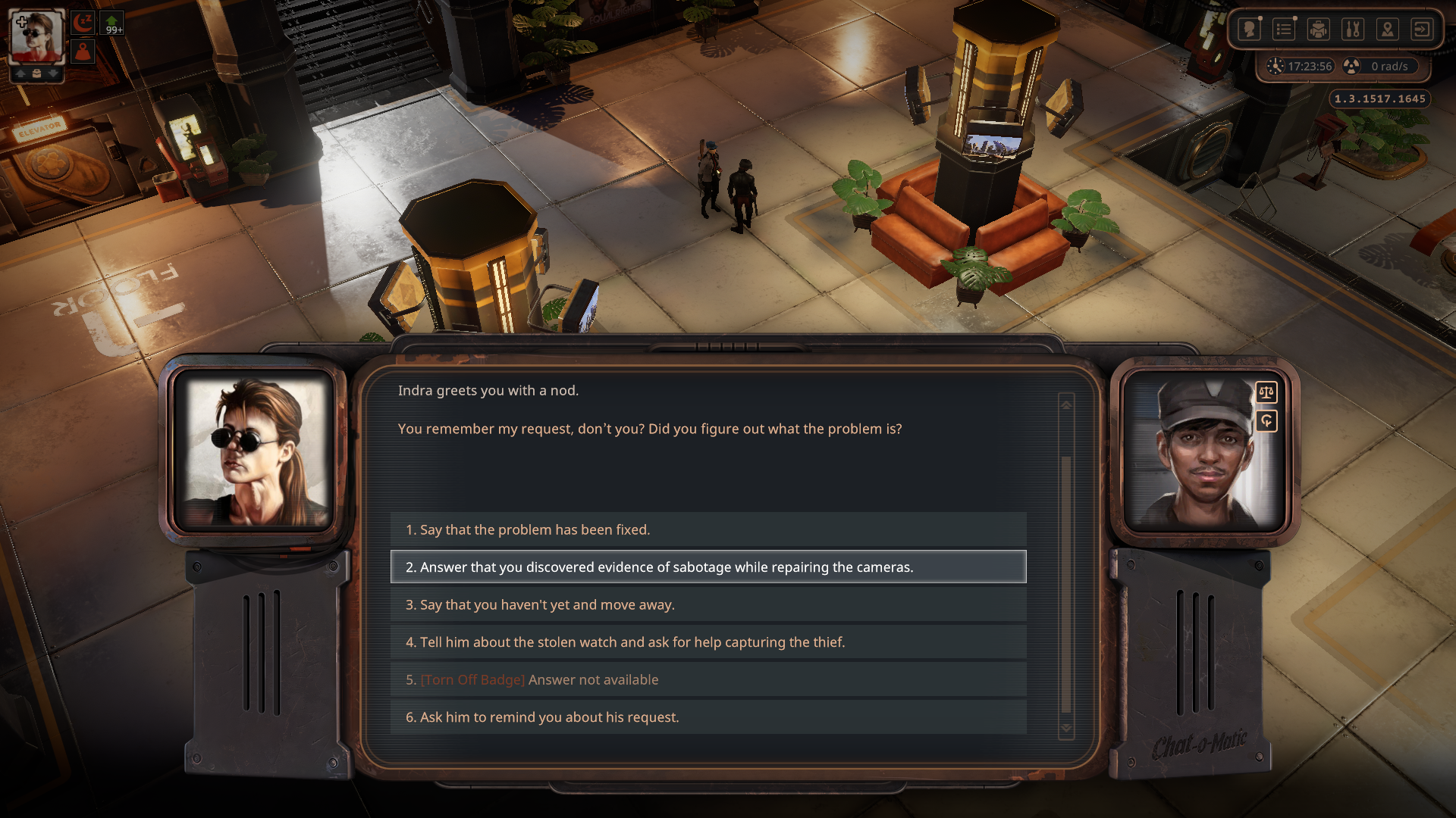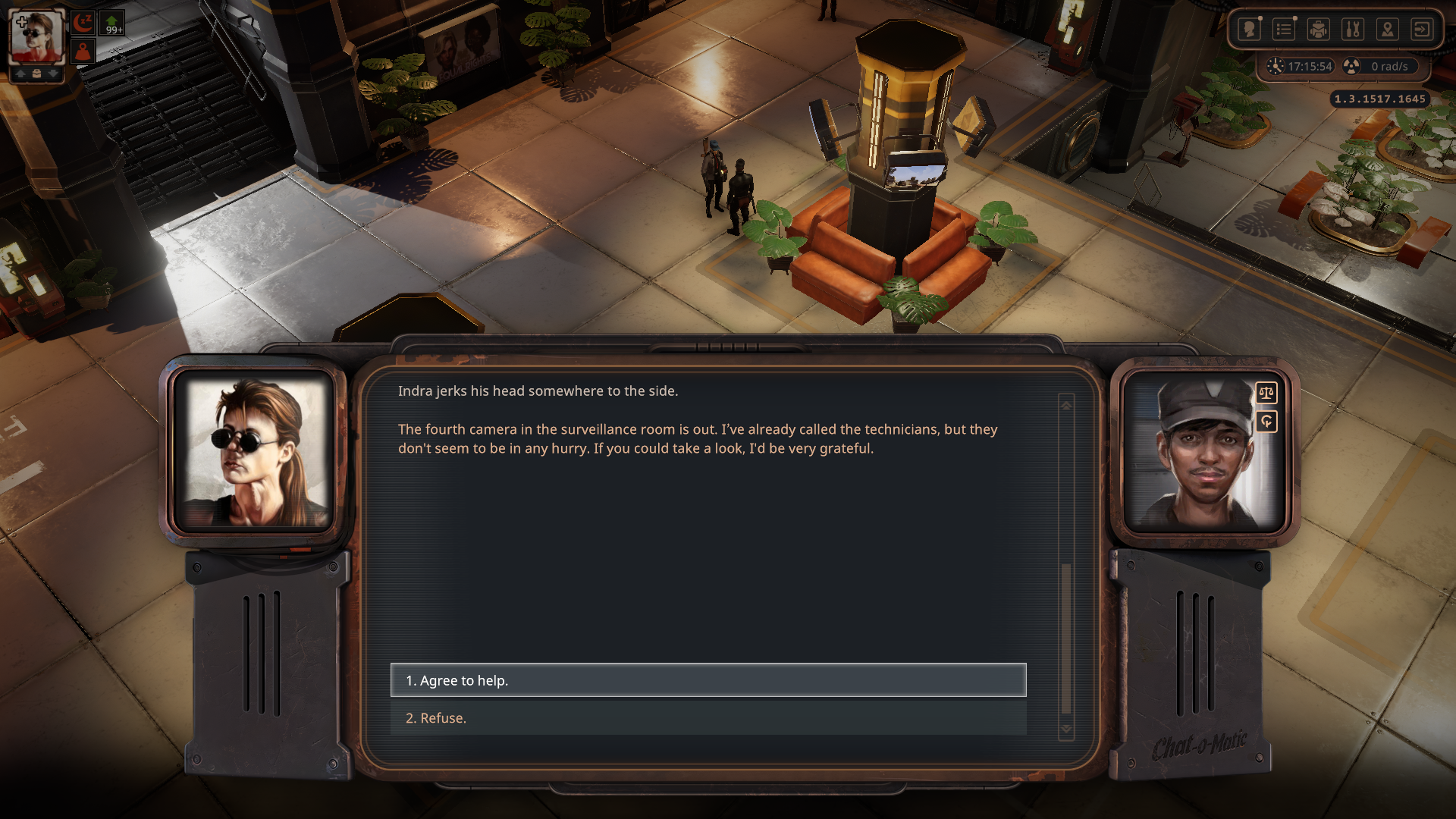 우선 1층으로 가서 보안 담당인 Indra와 대화하면 일을 도와달라고 한다.