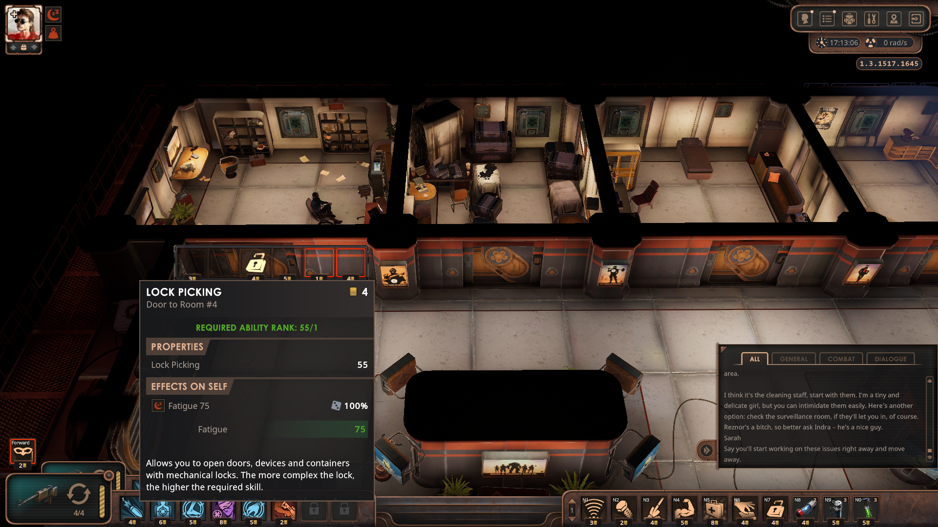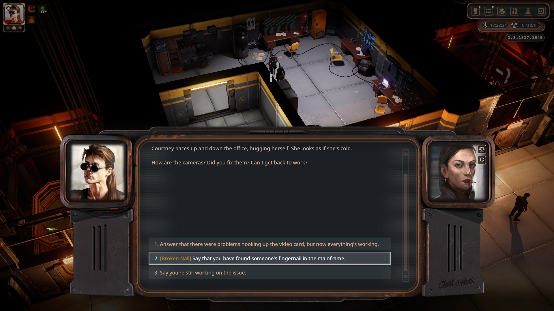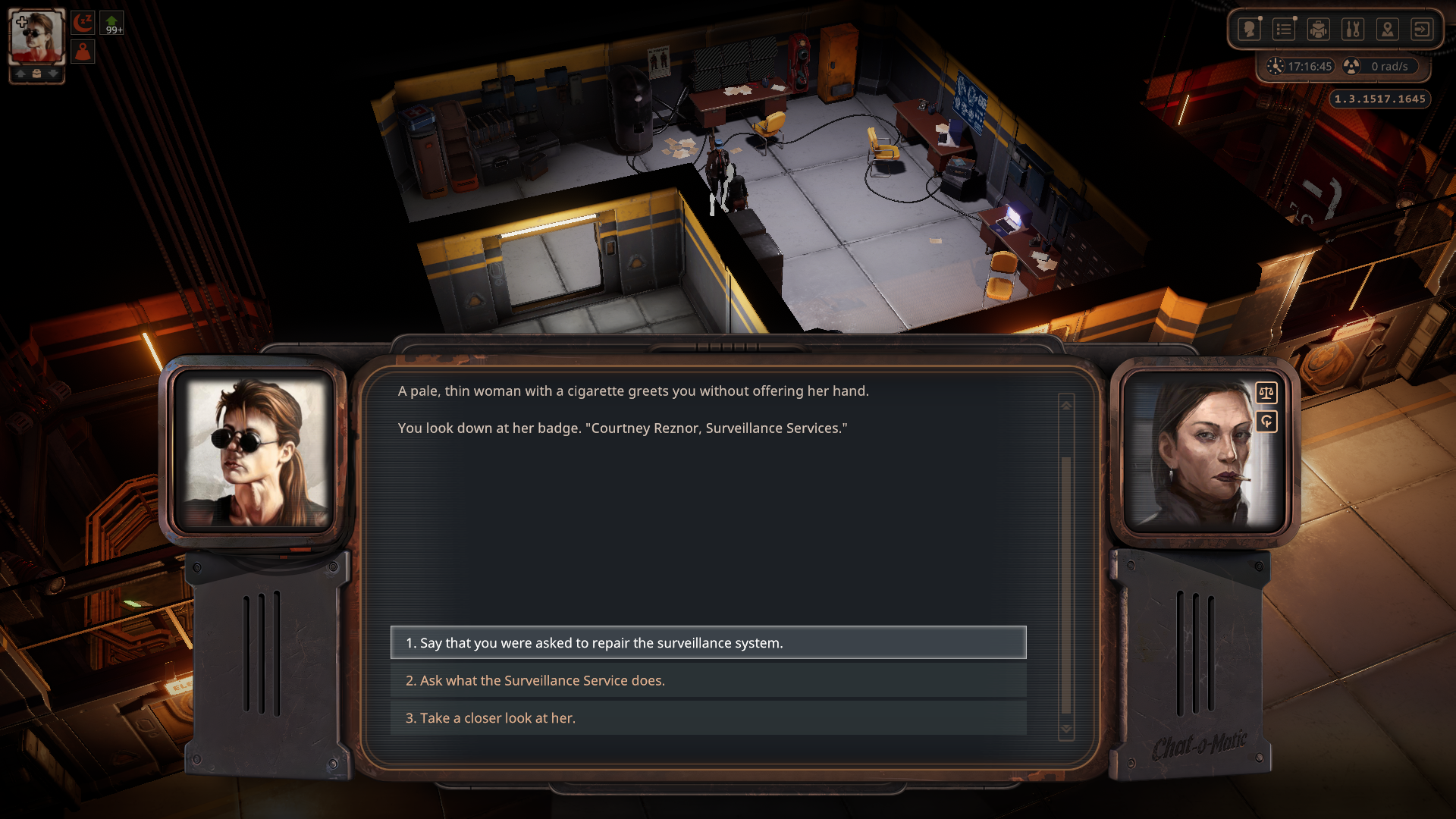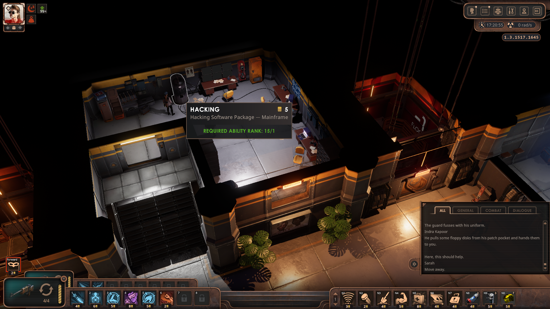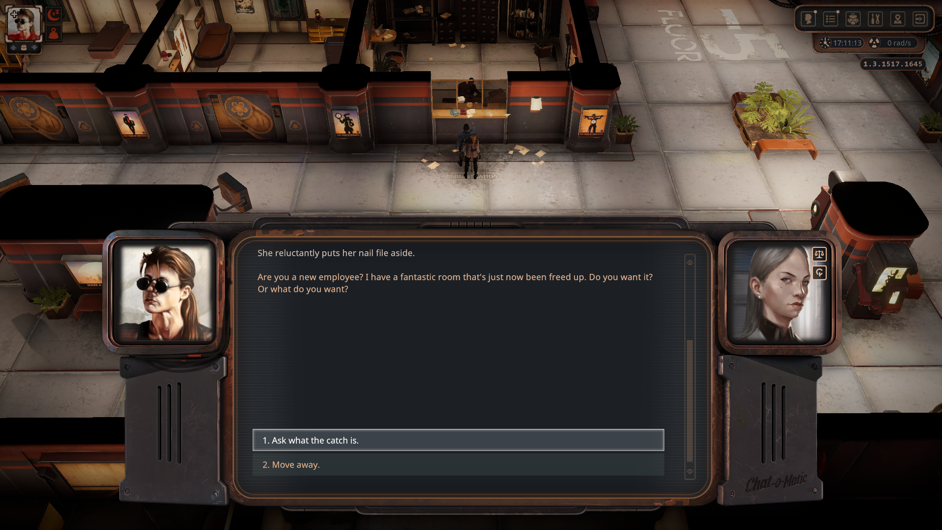우선 1층으로 가서 보안 담당인 Indra와 대화하면 일을 도와달라고 한다.