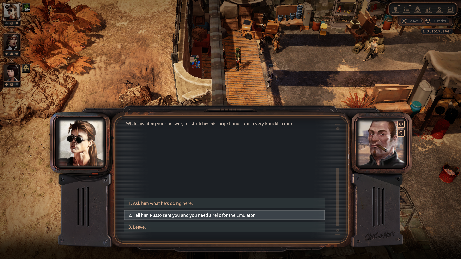 정크타운 슬럼 노점상가의 돈 스펜서와 에뮬레이터 프로젝트에 필요한 유물에 얘기해 보면 카라반이 습격당해 유실되었다고 한다.