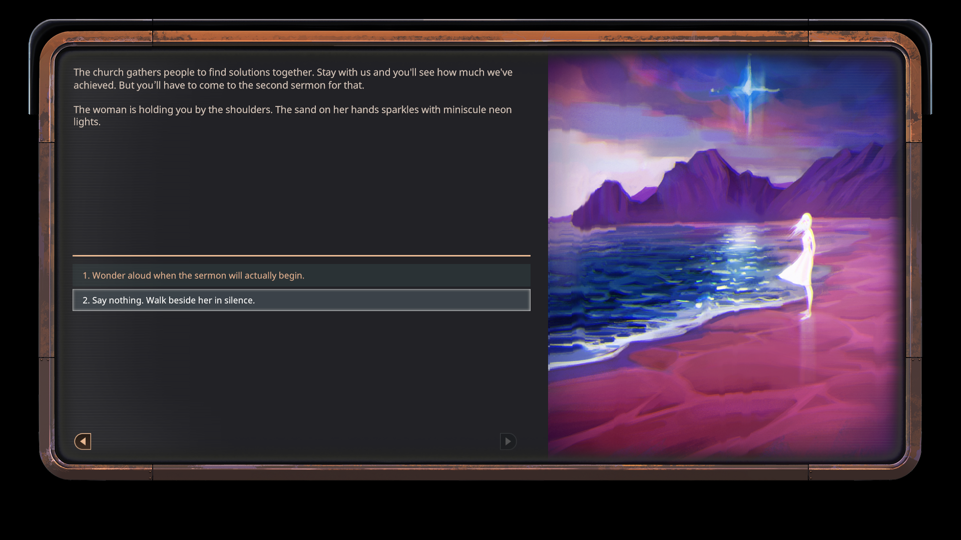 VR 세상에서 살아가는게 목표인 또라이 종교지만 어쨋거나 엔딩 루트 중 하나이므로 평판 관리가 필요하다면 대답을 잘 고르자.