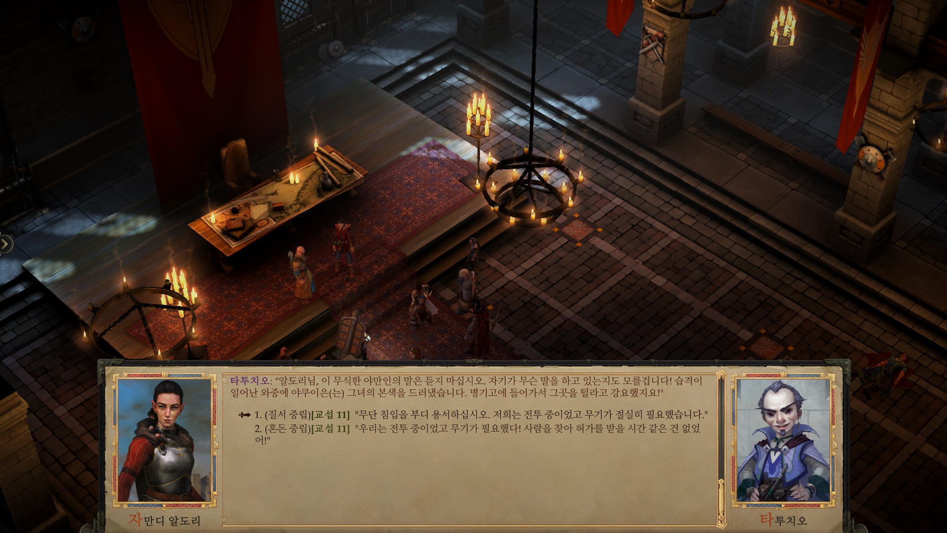이어지는 대화에서 선택지에 따라 합류할 동료가 정해진다.