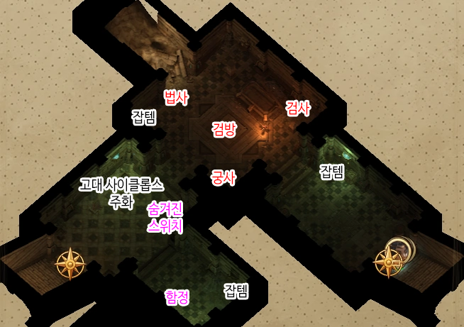 용병이 넷 있는데 법사한테 검치호를 붙이고 (검방 옆을 지나갈때 기회공격을 맞지 않도록 주의) 검방은 발레리, 궁사는 쥔공, 검사는 아미리를 붙이면 무난하게 정리할 수 있다. 검방은 AC가 높으므로 강렬한타격은 끄고 패는게 좋다.