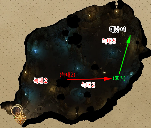 이를 잡다보면 바깥쪽에서 늑대 2마리가 추가로 들어온다. 후위가 당하지 않도록 타이밍 맞게 이동시켜주자.