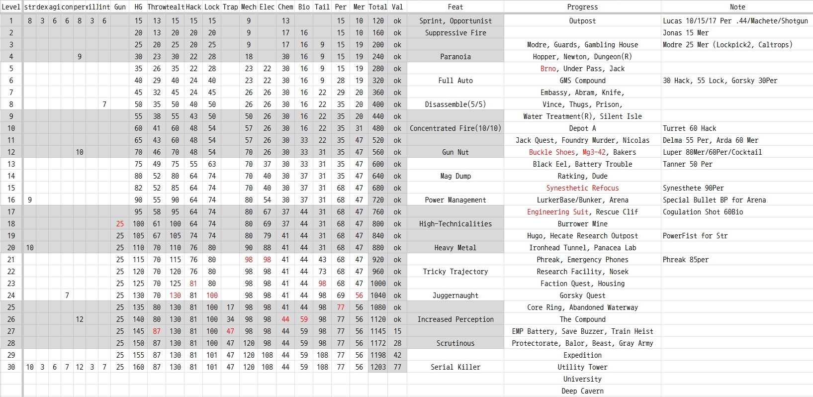 Con 수치는 과감하게 빼버리고 다른쪽에 투자해도 무방해 보인다. 하지만 실제로 플레이 하면서 느낀 바로는 3 Con 과 7 Con의 차이점은 생각보다 커서, 로딩 횟수를 줄여주고 탈모 방지에도 효과가 어느정도 있었다...