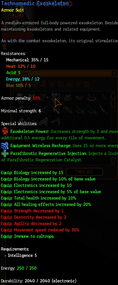 테크노메딕 외골격과 함께 쓰면 Biology 스킬을 상당히 아끼면서도 Deep Cavern에서 Corrossive Acid를 만들 수 있다.