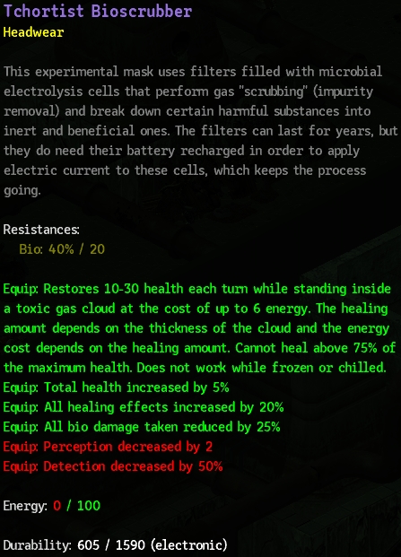 The Compound 에서 입수. 실제 입고 다니기에는 약간 부족하지만 Bio 스킬이 붙어있어서 상당히 좋다. Deep Cavern에도 가지고 가서 요긴하게 써먹었다.