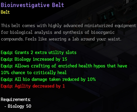 화학이나 다른 스킬을 올리는 벨트도 있지만, 이 벨트만이 유일하게 강화된 치료제를 만드는 옵션이 있다.