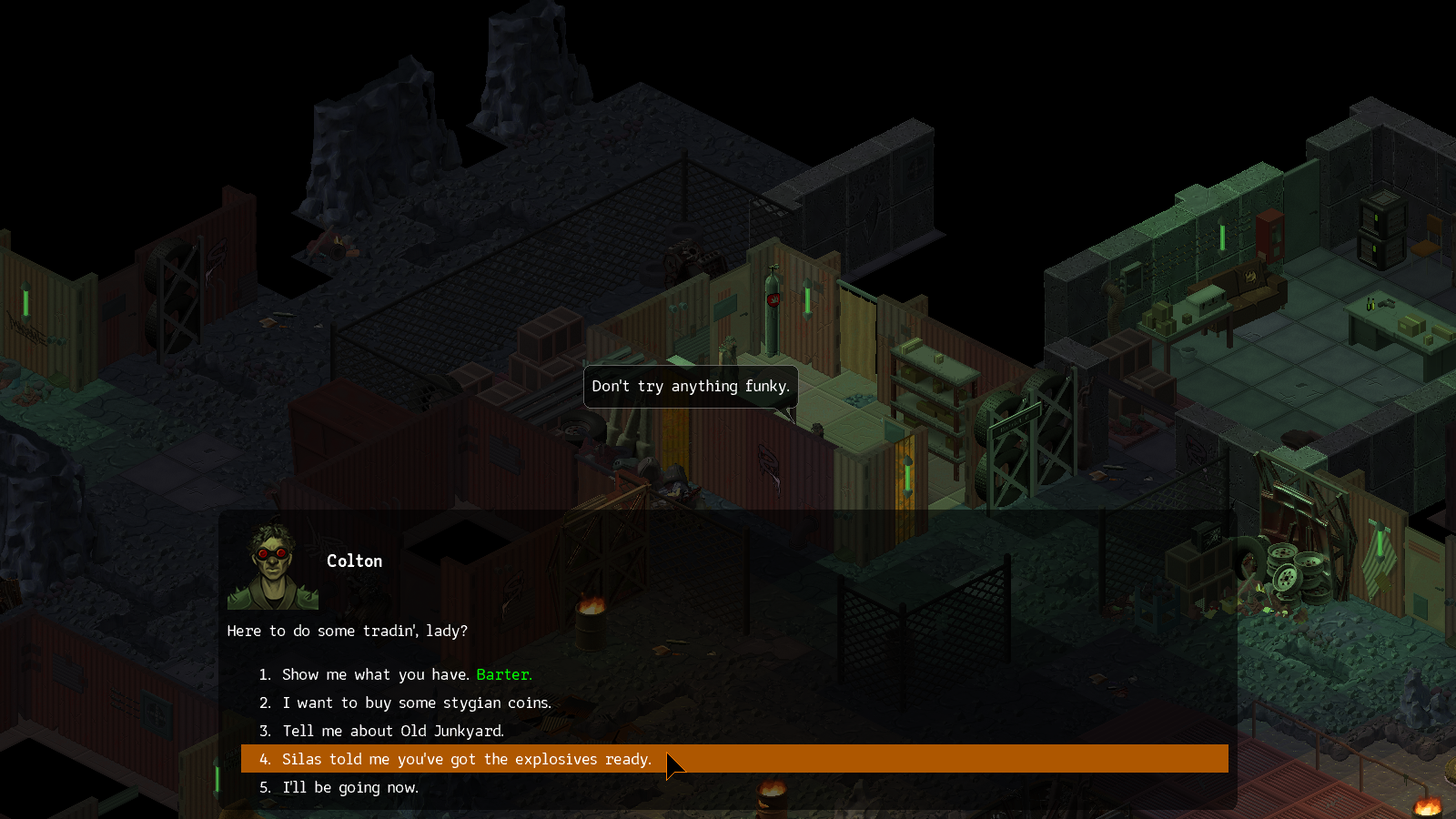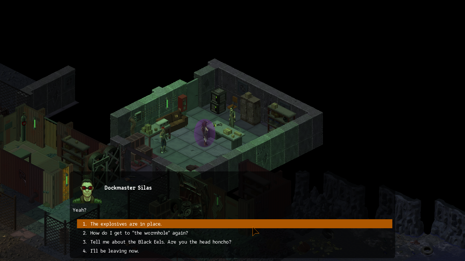Silas에게 소식을 알려주면 광산용 폭약을 설치해 달라고 한다.