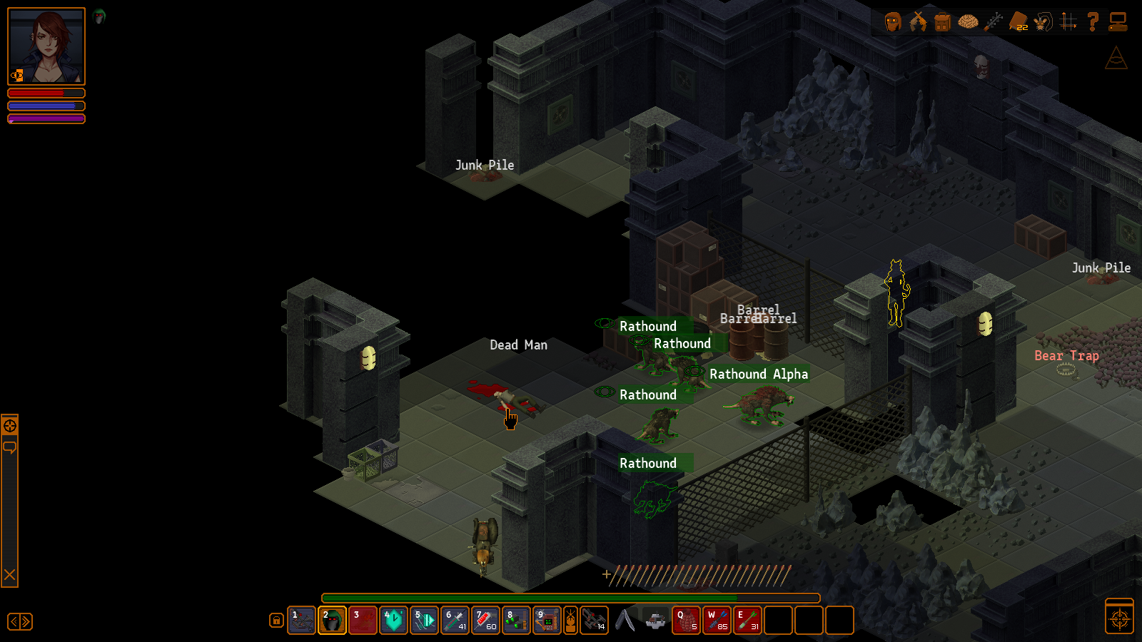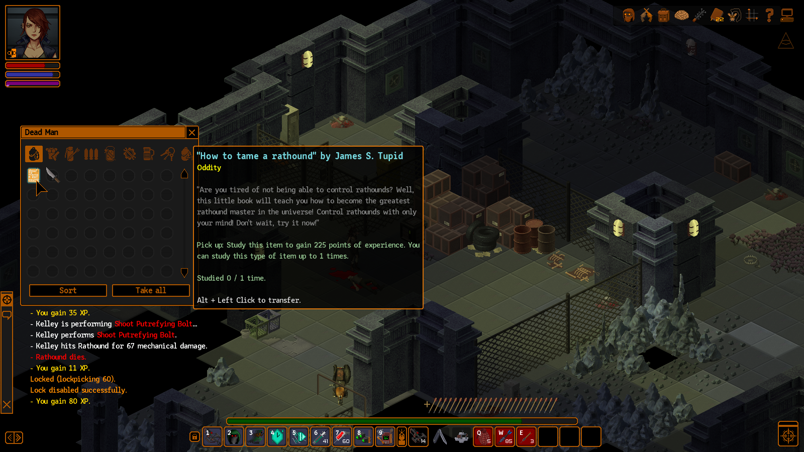 철창에 둘러쌓인 랫하운드 무리와 죽은 남자를 발견할 수 있는데