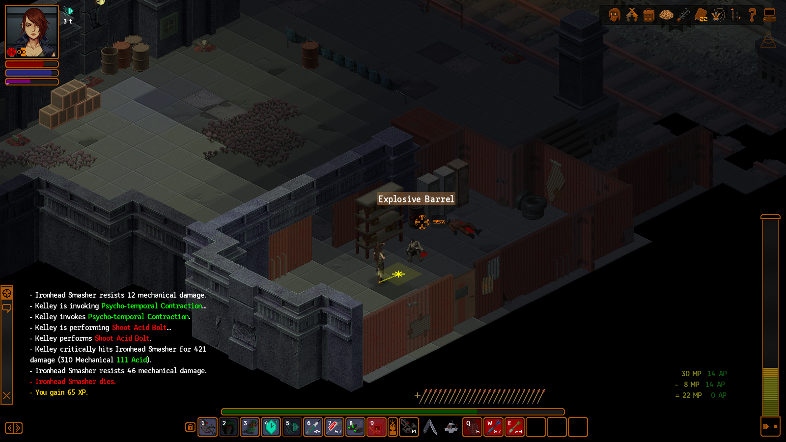전기볼트/화염볼트를 쓰면 근처의 폭발성 드럼통이 폭발하면서 난장판이 되는 구조로 되어있다.