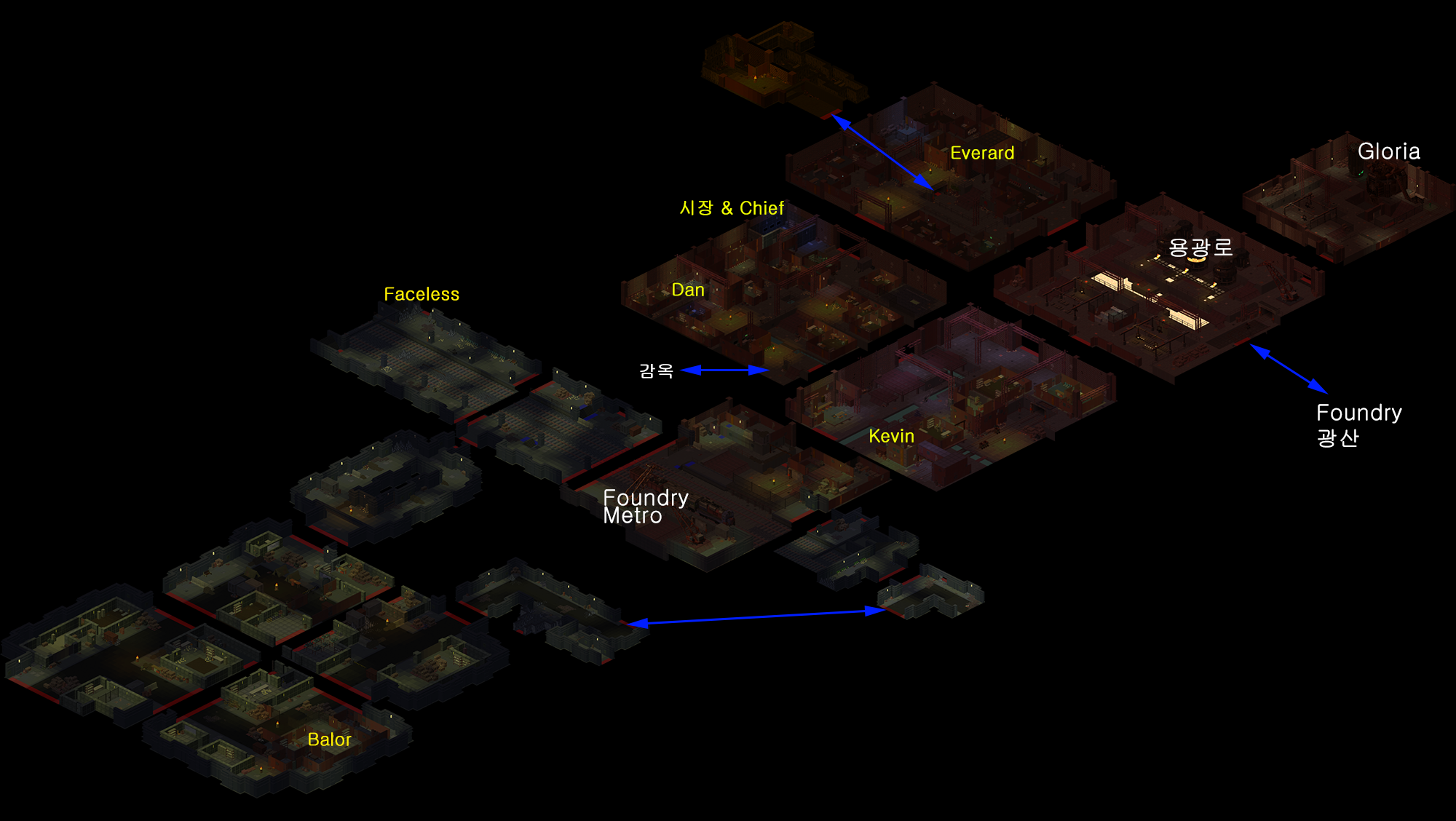 Rail Crossing에서 동쪽으로 넘어가도 되고 SGS에서 북쪽으로 가도 되지만 Foundry에서 남쪽으로 가는 길이 가장 빠르다.