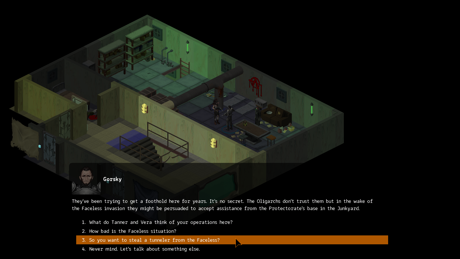 Gorsky는 Black Crawler 놈들을 기습하기 위해 버려진 Faceless 터널러를 훔치려고 계획한다.