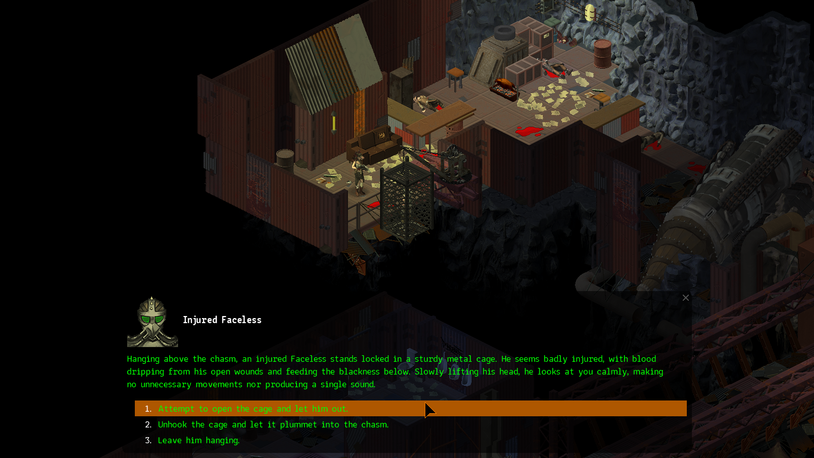 안쪽에는 부상당한 Faceless가 갇혀있다. 풀어주자.