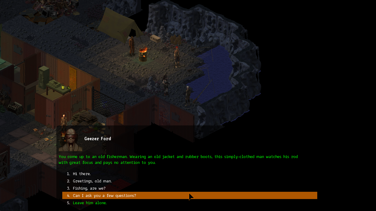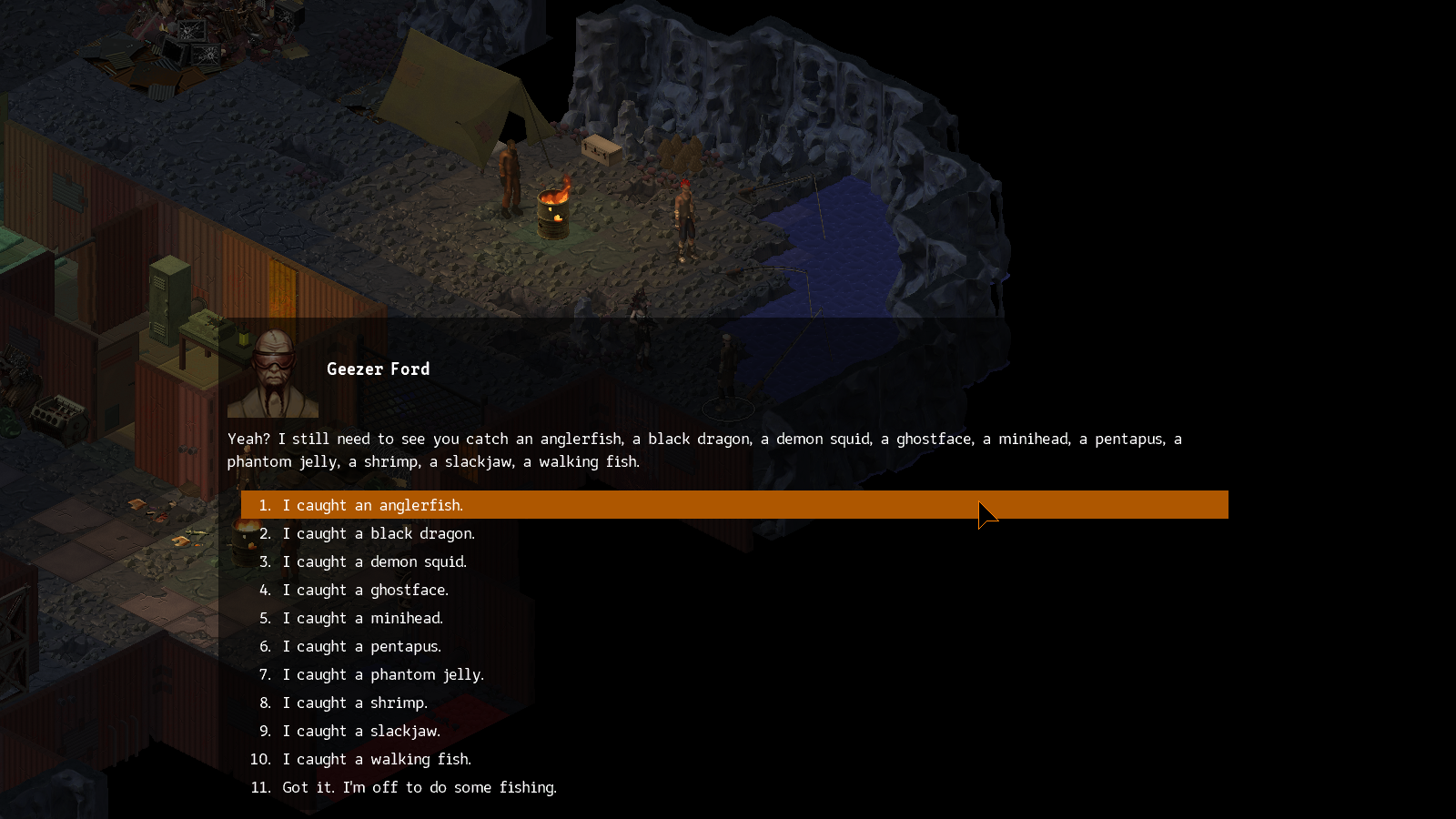 Junkyard 슬럼의 Geezer Ford와 낚시를 주제로 대화해보자.