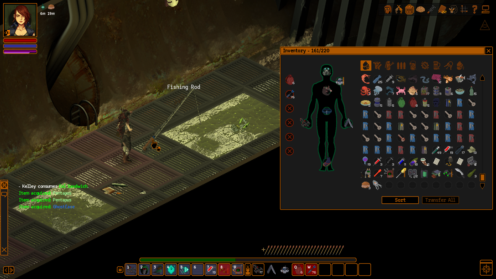 낚시는 Dexterity 수치 보정을 받으므로 Eel Sandwitch (Junkyard 에서 많이 판다) 등으로 버프를 받아두면 좋다.