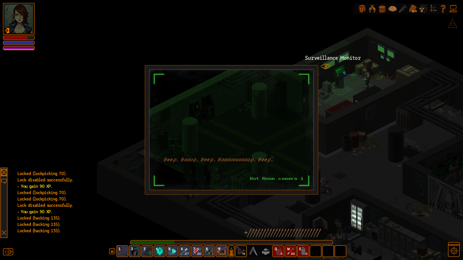 엘리베이터를 타고 창고로 가서 북서쪽 시큐리티 룸의 모니터를 살펴보자.