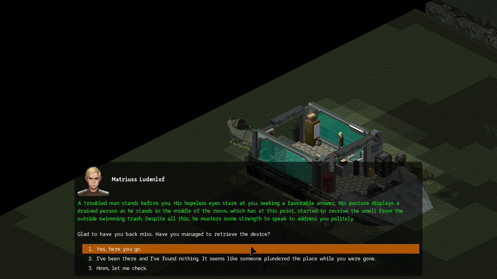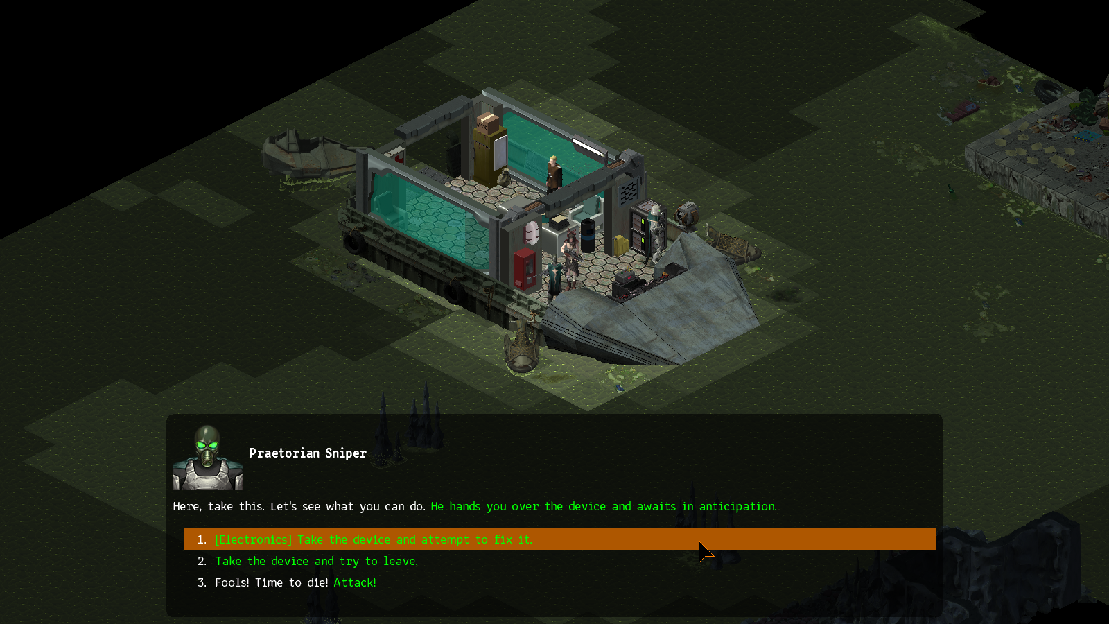 다시 스나이퍼와 대화해 장비를 수선한다. Electronics 45면 수리가 가능하다.