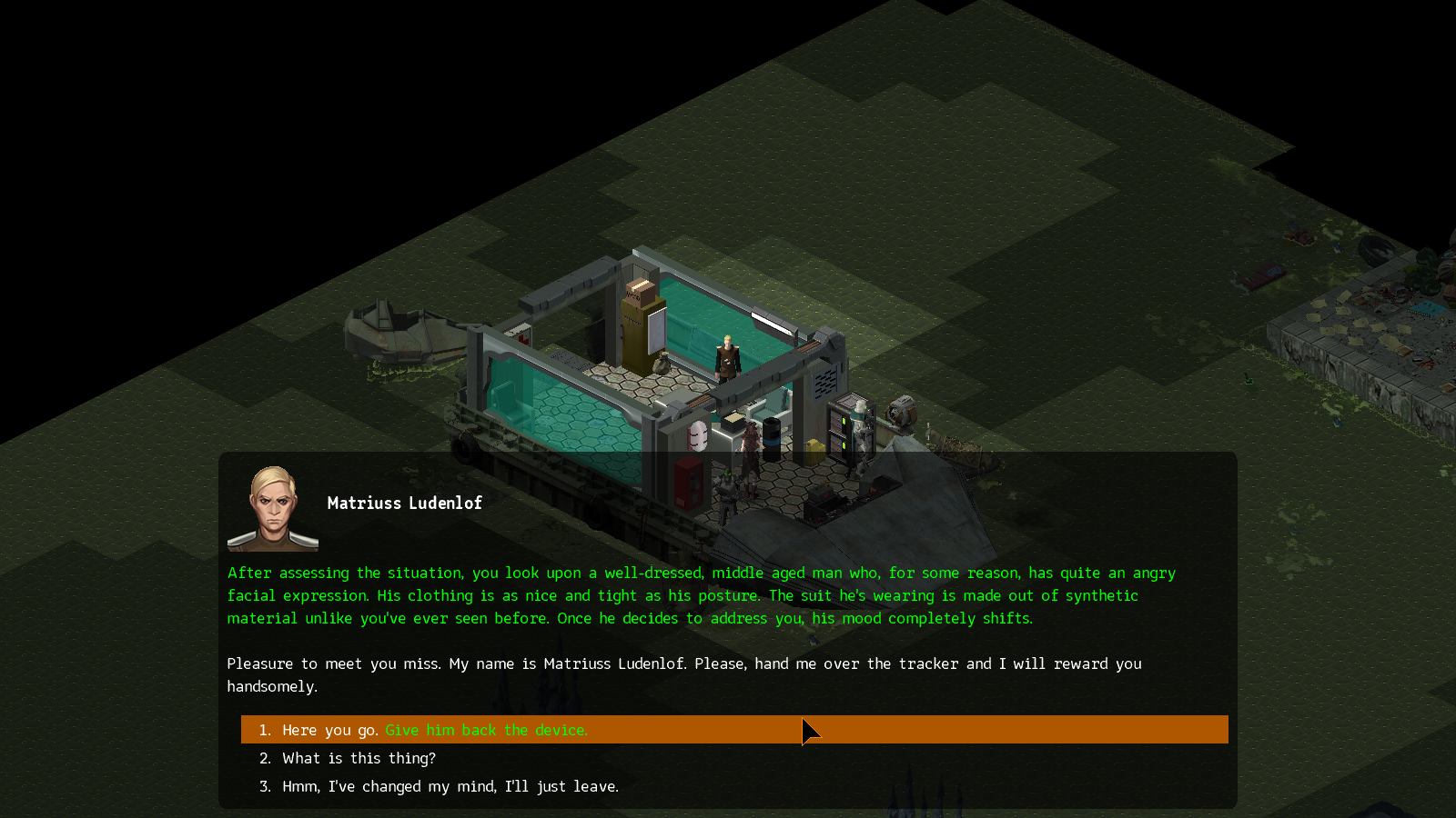 Ludenlof는 자기 사무실 건물에 있는 추적 장치를 가져와 달라고 한다.