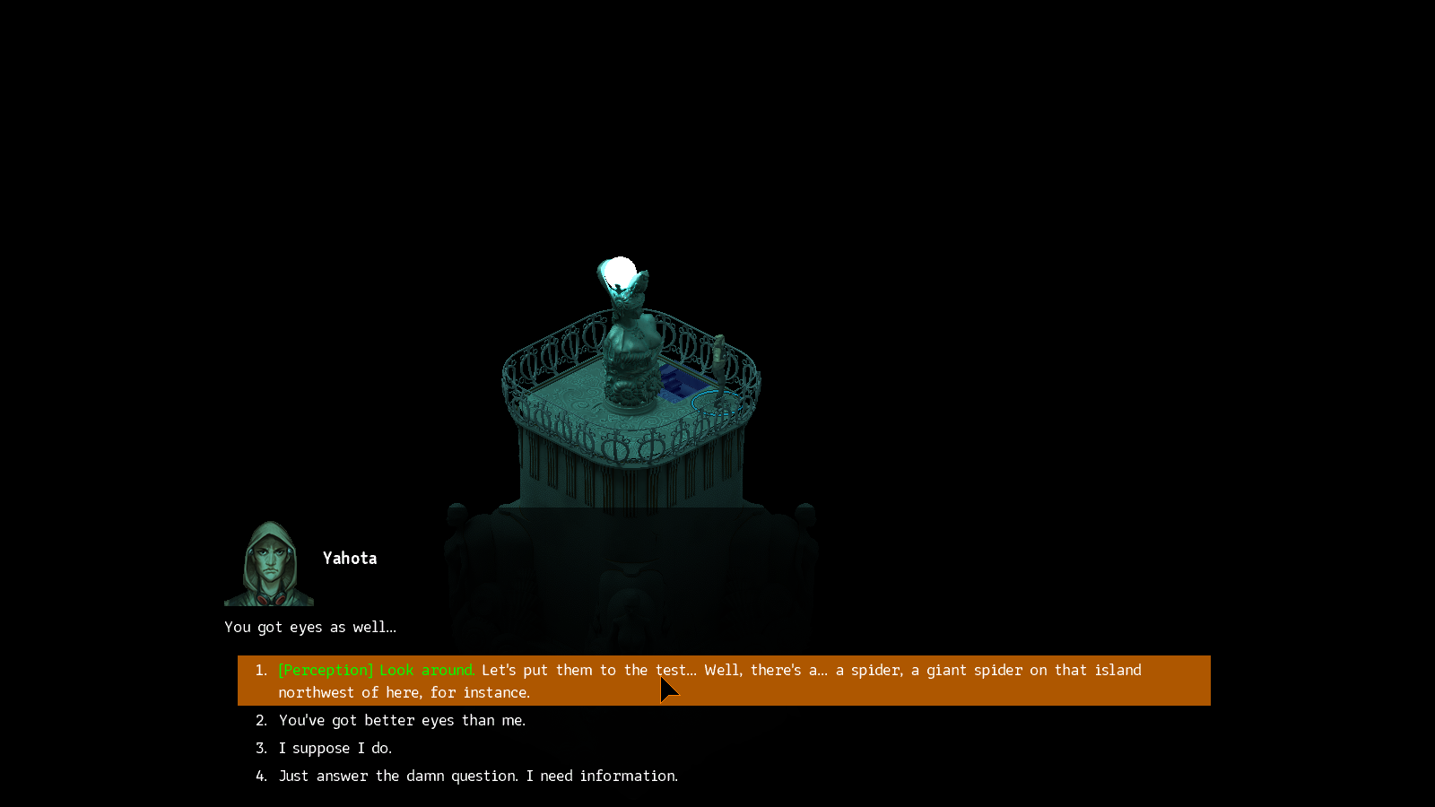 다만 그 전에, 생각보다 중요한 단서를 제공하므로 꼭 대화해 두어야 하는데 놓치기 쉬운 인물들이 있다. 하나는 해적과 원주민 사이를 자유롭게 오가는 Ferryman이고 또 하나는 추방당한 원주민인 Yngwar이다. 원주민을 치기 전에 우선 이 둘과 대화를 나눠보자.