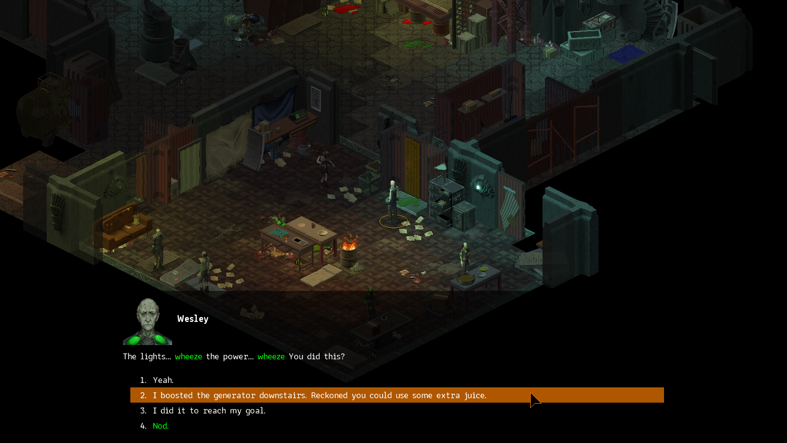 Wesley와 대화하면 전기를 넉넉히 쓸 수 있게 해줘 고맙다고 한다.