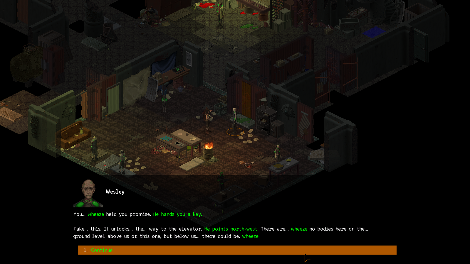 Wesley에게 다시 가면 엘리베이터 키를 준다.