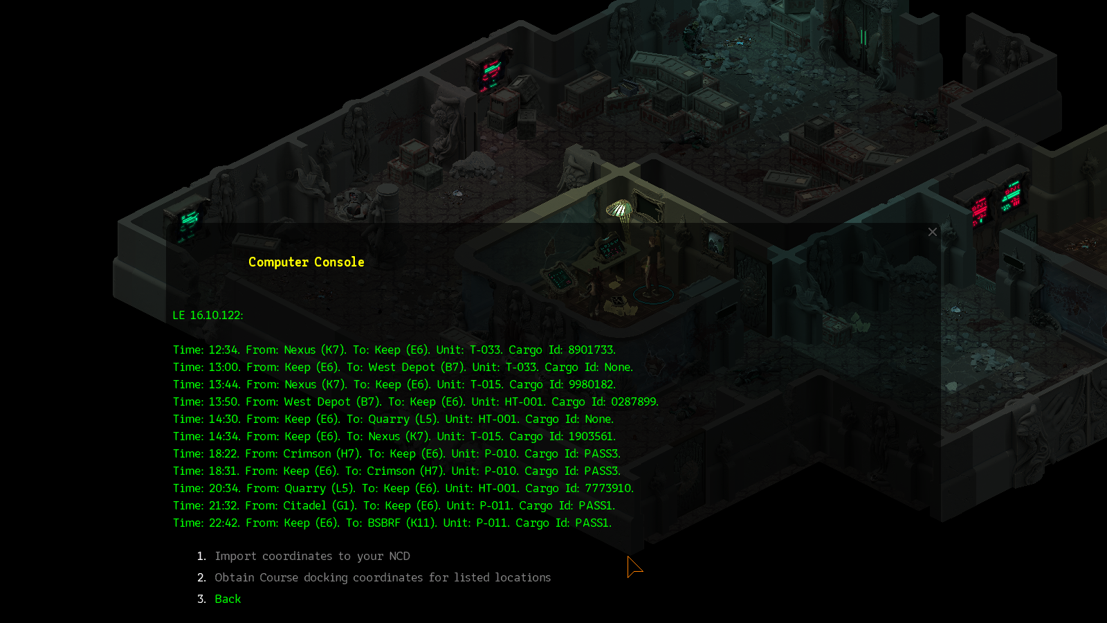 북서쪽 방에서 키를 확보할 수 있는데 이걸로 근처의 또다른 컴퓨터 콘솔이 있는 방 문을 열 수 있다.
