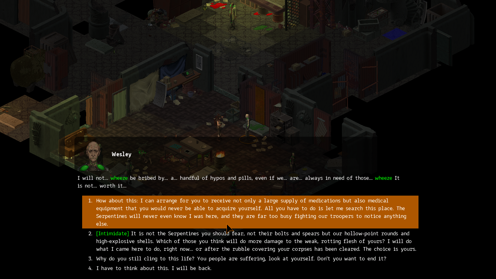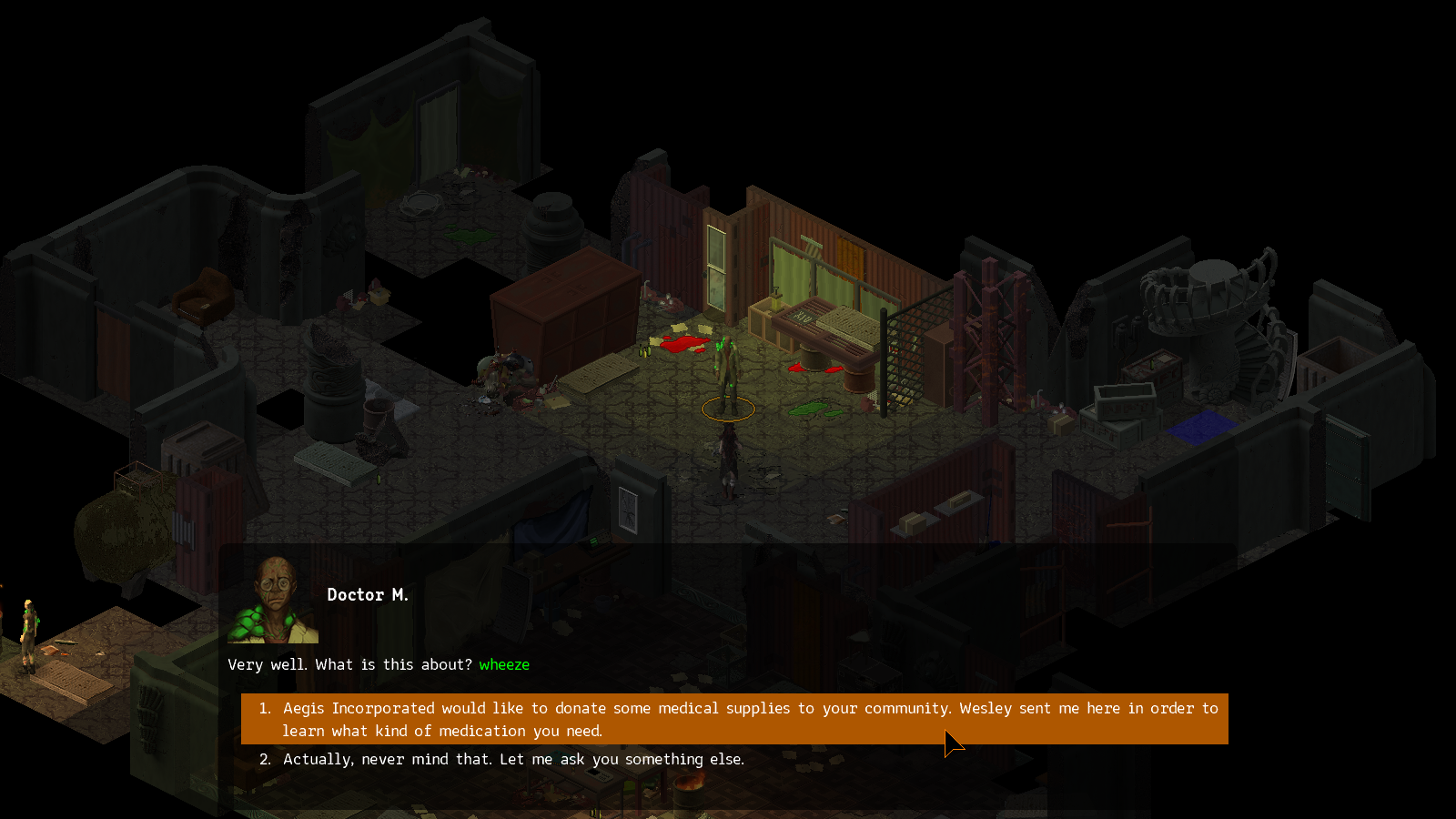 새로 도착한 원정대에 거부감을 드러내지만 의료지원을 해주겠다고 딜을 해보면 Doctor M과 얘기해 보라고 한다.