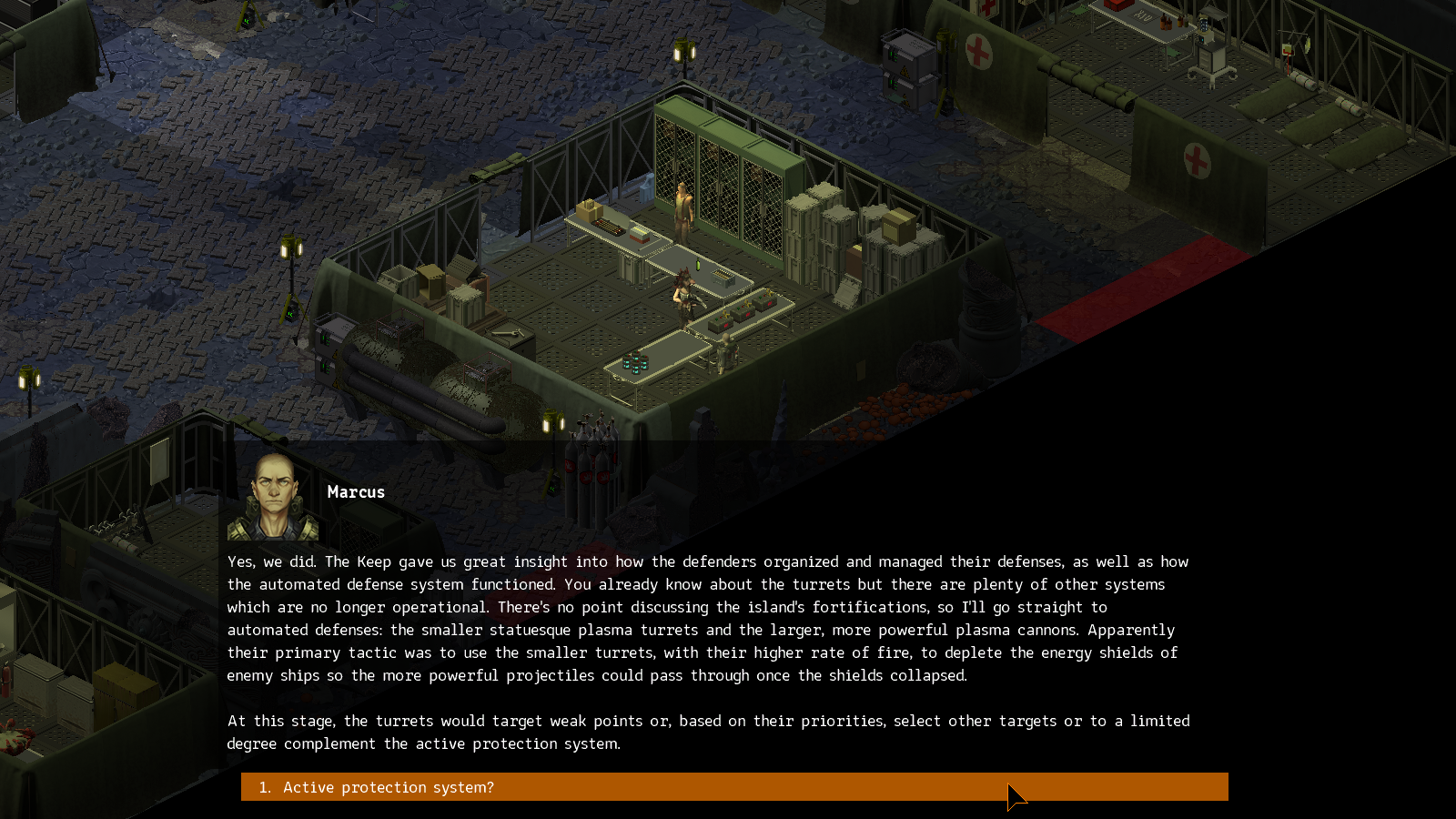 Marcus와 대화하면 캠프 방어에 대해 정보를 얻을 수 있다.