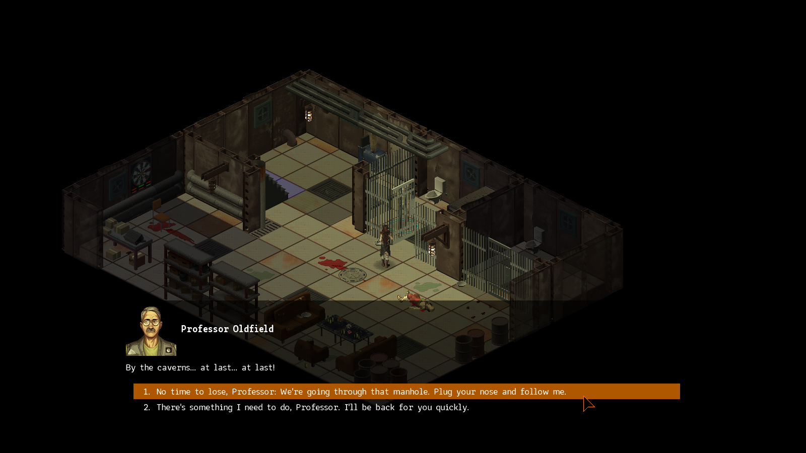 D'Finger의 소지품에서 열쇠를 습득한 후 교수가 갇힌 문을 열어주자.