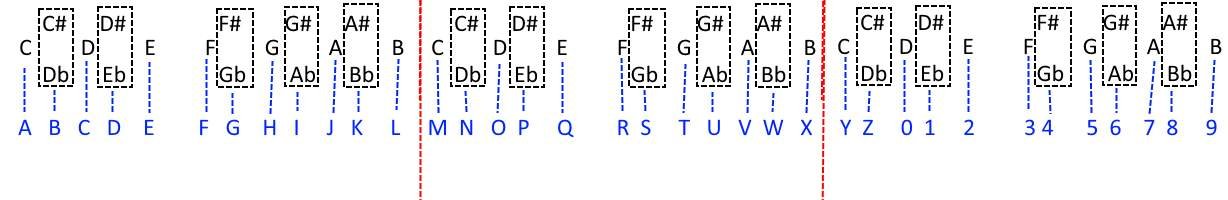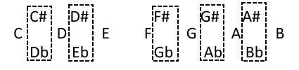 [C] [C# Db] [D] [D# Eb] [E] [F] [F# Gb] [G] [G# Ab] [A] [A# Bb] [B]