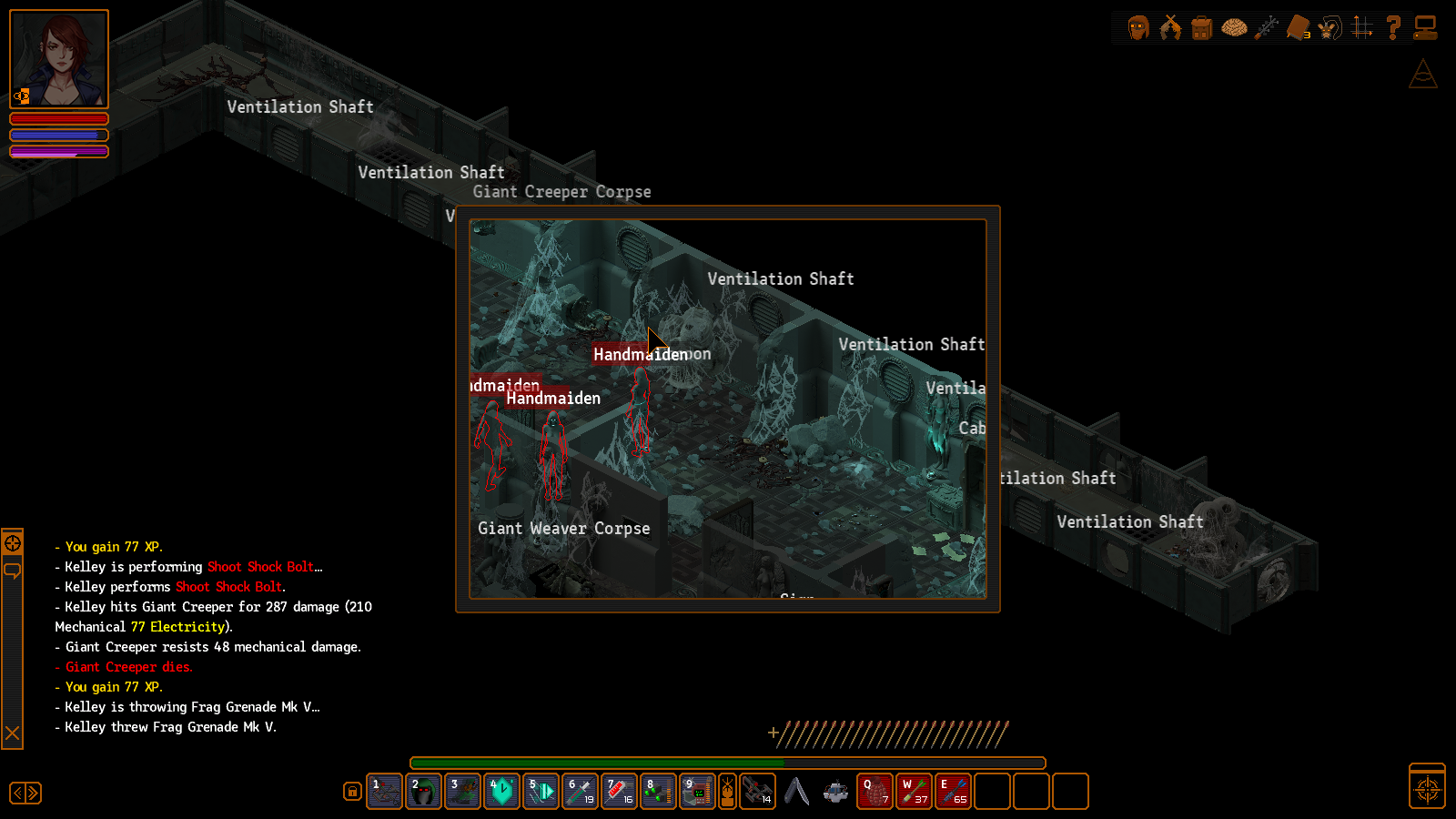 거미랑 메이드랑 신나게 싸우는 동안 감시카메라를 부순다. 혹시 메이드 한마리 어그로 붙으면 그것도 잡아준다.