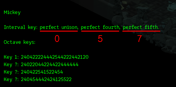 이것을 편의상 인터벌 키 A, B, C 라 이름 붙이고 A=0, B=5, C=7 이라 하자.