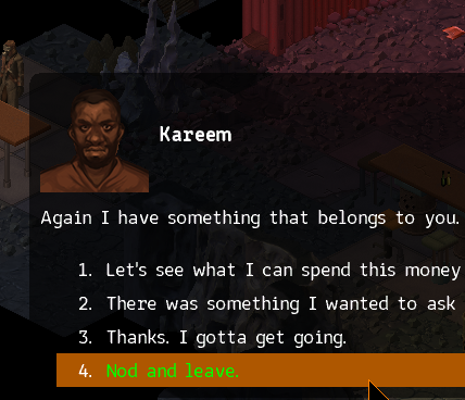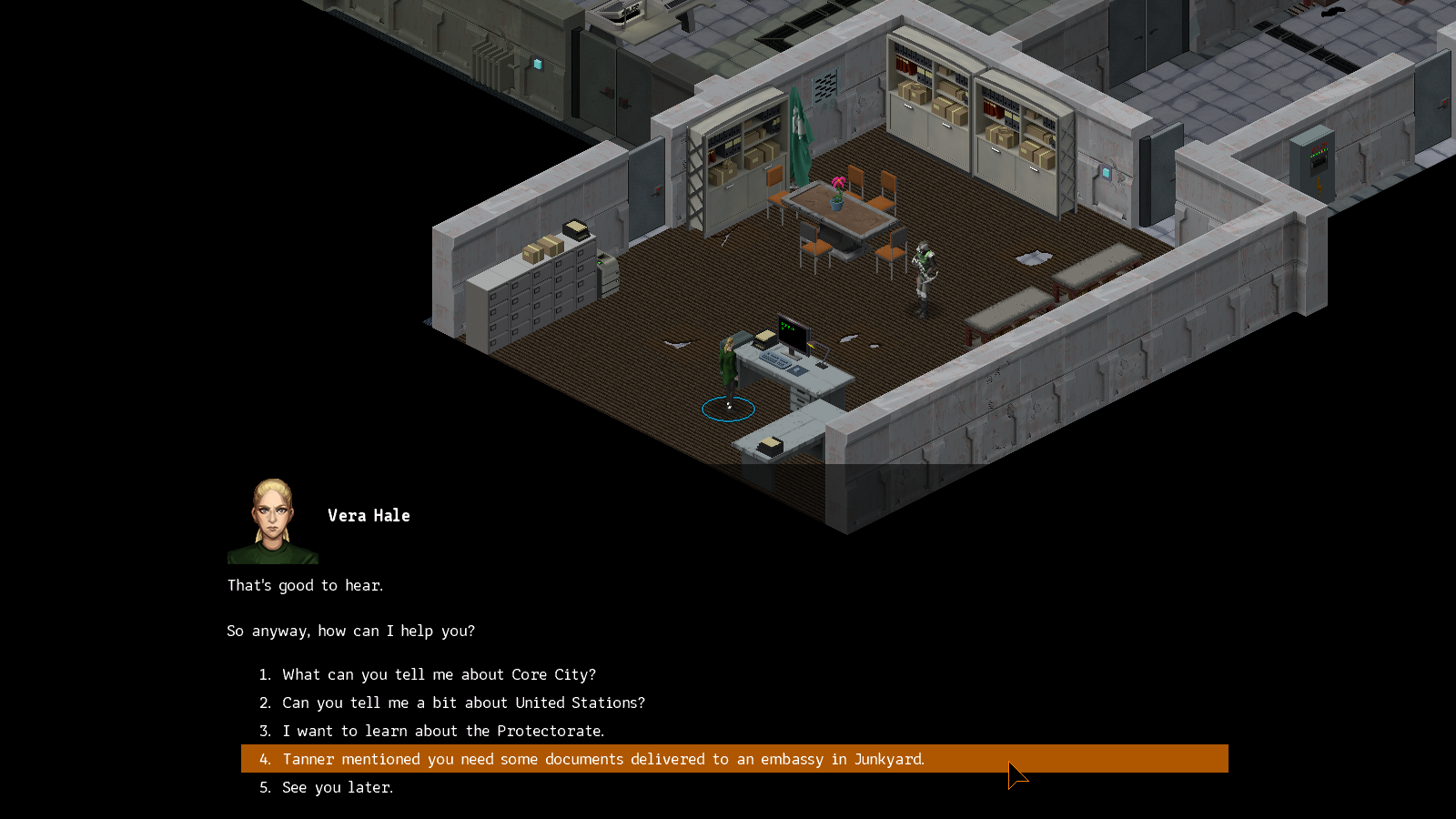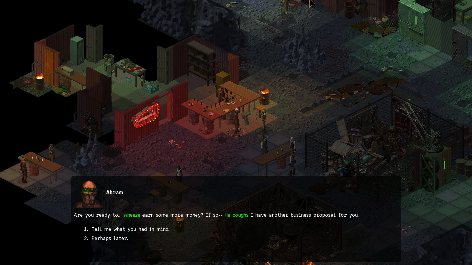 Abram과 친근한 대화를 나눠보자. 대사 주변의 보안사항을 캐묻는데 Perception수치가 높으면 정답이 쏙쏙 나온다.