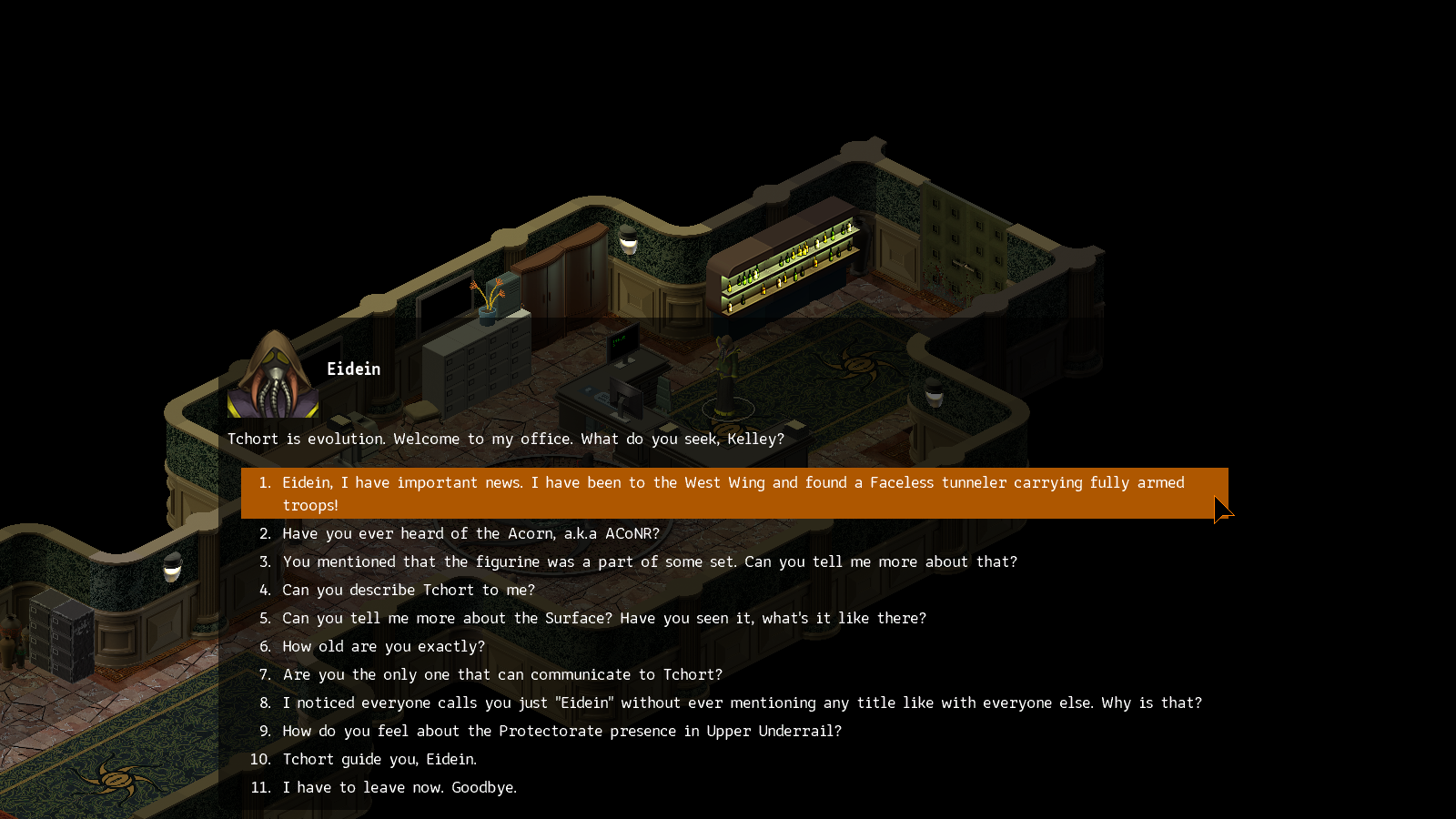 플레이 하면서 Faceless와 어떤 관계를 쌓았는가에 따라 다르지만, 예전 Core City에서 부상당한 Faceless를 도와두었다면 이때 다시 만날 수 있다. Faceless의 침공이 임박했다며 도망치라고 경고해 준다.