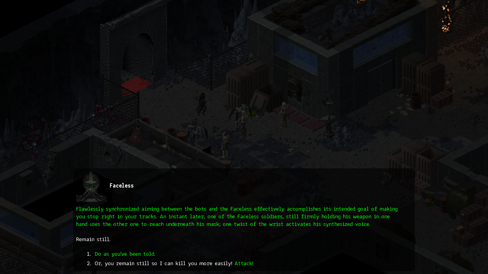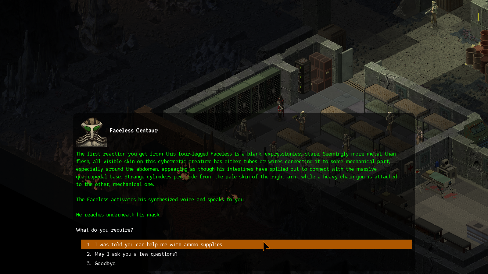 이전 Faceless와 조우했을때 적대한적이 없다면 보급품도 뱓을 수 있고 상세한 정보도 얻을 수 있다.