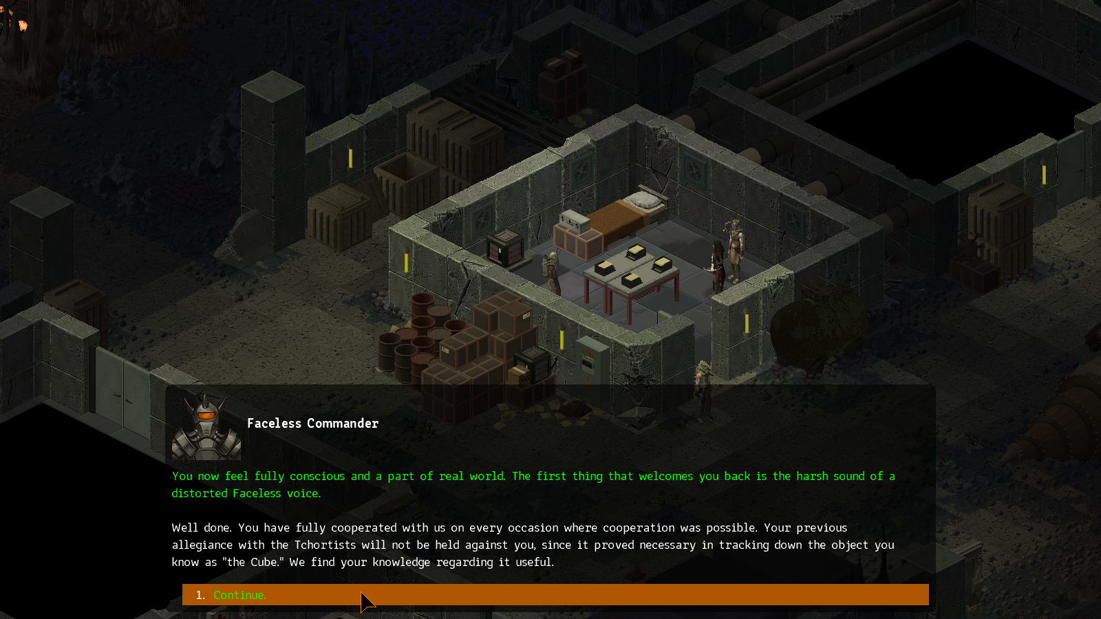 Faceless 사령관 건물의 옆에 붙잡힌 Tchorists가 있는데 이들을 구출해서 돌아가는 것도 가능하다.