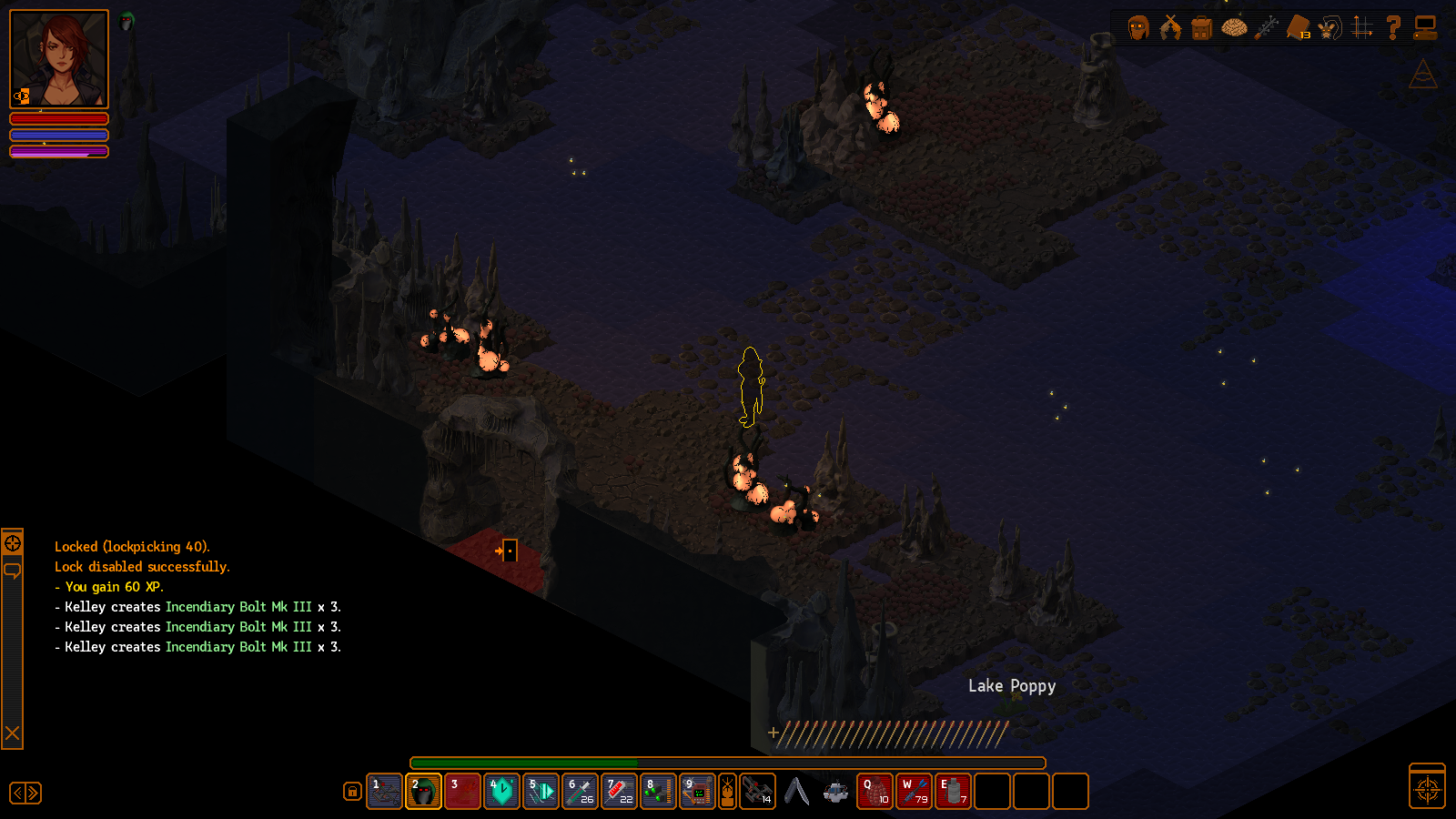 이곳부터는 바닥을 자세히 보면 땅이 움직이는 것을 볼 수 있는데 그게 지렁이다. 지렁이한테 너무 가까이 붙으면 전투가 벌어지므로 조심할 필요가 있다. 미리 루트소다를 마셔두고 선제권을 가져간 다음 실드 켜는걸 잊지 말자.