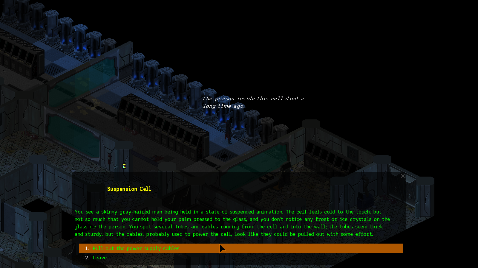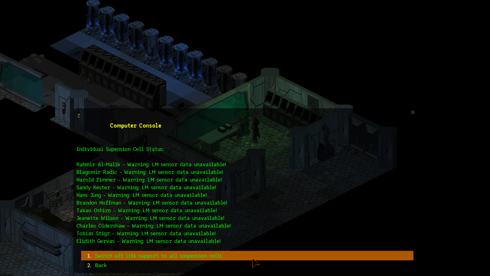 옆방의 콘솔을 작동시켜 서스팬션 포드의 생명유지장치를 꺼버린다.